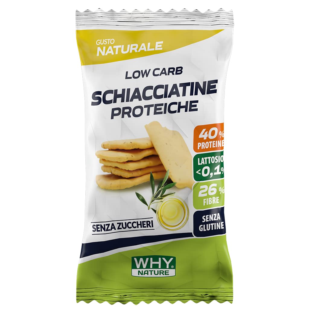 WHYnature Protein Crushed Muffins are a food with 40 protein, palm oil-free and gluten-free, and high in fiber. Prepared with certified quality ingredients, WHYNature Protein Crushed Muffins contain less than 1 gram of sugar per serving. In their composition, we use proteins rich in high biological value amino acids, such as fresh egg white, milk proteins, and extra virgin olive oil, for all their nutritional value. Conveniently packaged in freshness pouches, these crushes from the WHYnature Low Carb line are ideal for a quick and easy protein snack throughout the day. They are also recommended as bread substitutes for those looking to increase their daily protein intake and for those following a high-protein diet. Why choose WHYnature protein foods? The composition of the low-carb foods in the WHYnature protein food line has been formulated using certified raw materials, allowing us to obtain a product with less than 1 gram of sugar per serving. In the formula, we use proteins rich in high biological value amino acids, such as fresh egg white, milk proteins, and extra virgin olive oil, for all their nutritional benefits. 100 gluten-free: The WHYNature protein food line, mindful of digestive issues caused by gluten, offers a range of snacks designed to prevent digestive problems for those intolerant or sensitive to this ingredient. INGREDIENTS Wheat fiber (swallowed), soy protein isolate (non-GMO) extra virgin olive oil (10 ) hydrolyzed collagen (food-grade gelatin) egg white, vegetable fibers egg white powder milk proteins sunflower seed oil thickener (carob seed flour) leavening agents (sodium diphosphorescencarbonates, ammonium bicarbonate, corn starch) salt emulsifier (soy lecithin) antioxidant (alpha-tocopherol).WHY NATURE LOW CARB PRESSE PROTEIQUE - Snack Protéiné Sans Gluten - Snacks Salés - Goût Naturel - 30 grDESCRIPTION DU PRODUIT DESCRIPTION DU PRODUIT Les écrasées protéinées WHYNature sont un aliment avec 40 de protéines, sans huile de palme et sans gluten, à haute teneur en fibres. Préparées avec des ingrédients certifiés de qualité, les écrasées protéinées WHYNature contiennent moins de 1 gramme de sucre par portion. Dans la composition, nous utilisons des protéines riches en acides aminés de haute valeur biologique comme le blanc d'oeuf frais, les protéines de lait et l'huile d'olive extra vierge pour toutes les valeurs nutritionnelles qu'il contient. Les écrases de la ligne Low Carb WHYnature, confortables à porter avec soi grâce aux sachets de fraîcheur sont idéales pour une collation protéinée rapide et simple tout au long de la journée. Ils sont également recommandés comme substituts de pain, pour ceux qui souhaitent augmenter leur apport quotidien en protéines et pour ceux qui suivent un régime à haute teneur en protéines. Pourquoi les aliments protéinés WHYnature ? La composition des aliments low-carb de la ligne d'aliments protéinés WHYnature a été formulée en utilisant des matières premières certifiées qui nous permettent d'obtenir un produit avec moins de 1 gramme de sucres par portion. Dans la composition, nous utilisons des protéines riches en acides aminés de haute valeur biologique comme le blanc d'oeuf frais, les protéines de lait et l'huile d'olive extra vierge pour toutes les valeurs nutritionnelles qu'il contient. 100 sans gluten : la ligne d'aliments protéinés WHYNature, attentive aux problèmes digestifs causés par le gluten, propose, pour les personnes intolérantes et sensibles à cet ingrédient, une ligne de collations étudiées pour prévenir les troubles digestifs. INGRÉDIENTS Fibre de blé (avalé), protéines isolées de soja (NO OGM) huile d'olive vierge extra (10 ) collagène hydrolysé (gélatine alimentaire) blanc d'œuf, fibres végétales blanc d'œuf en poudre protéines de lait huile de graines de tournesol épaississant (farine de graines de caroube) agents levure Nombreux (diphosphorescencarbonates de sodium, bicarbonate d'ammonium, amidon de maïs) sel émulsifiant (lécithine de soja) antioxydant (alpha-tocophérol).