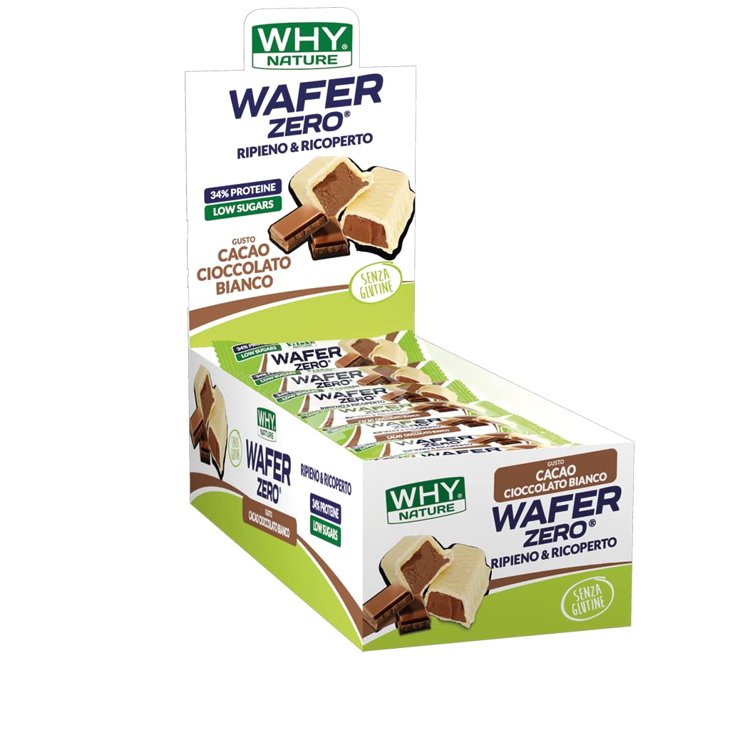 WHY NATURE WHY NATURE WAFER ZERO - Wafer waffle with protein filling Cocoa and white chocolate flavour - Gluten free protein snack - Box of 24 pieces - 35 g