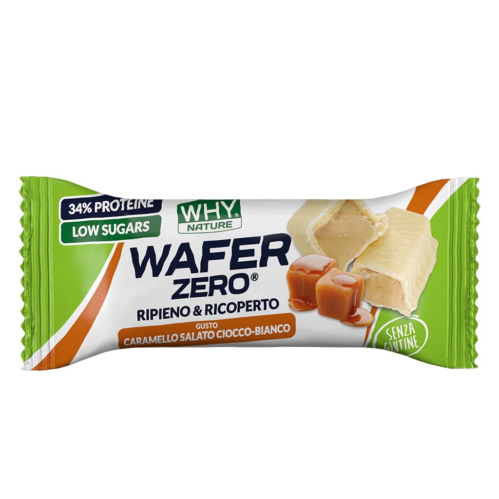 Delicious chocolate-covered waffle with a protein cream filling. Our filled waffles are all high in protein, a source of fiber, and low in sugar. They can be enjoyed for breakfast with yogurt, coffee, and fruit for a great energy boost. They are also perfect as a snack any time of day. Inside each waffle is a soft coconut center that enhances the taste and flavor with every bite. Available in the following flavors: Cocoa Hazelnut, Melting Coconut, White Chocolate Pistachio, White Chocolate Hazelnut, Cocoa White Chocolate, and White Chocolate Salted Caramel. INGREDIENTS Dark chocolate with sweeteners [cocoa mass, partially hydrolyzed inulin, cocoa butter, sweetener: erythritol, fat-reduced cocoa powder, emulsifier: soy lecithin, natural vanilla flavoring, sweetener: steviol glycosides], milk proteins, high olic sunflower oil, fruit oligosaccharides, white chocolate with sweetener. Ingredients (8 ) [cocoa butter, whole milk powder, emulsifier: soy lecithin, sweetener: malt, natural vanilla flavoring], hydrolyzed collagen, cocoa butter, rice flour, potato starch, whole milk powder, grated coconut flour (0.4 ), emulsifier: sunflower lecithin, corn starch, corn flour, quinoa, vanilla extract, sweetener: sucralose, flavoring, raising agents: sodium bicarbonate and ammonium bicarbonate. May contain eggs, other tree nuts (hazelnuts, pistachios), peanuts.WHY NATURE WAFER ZERO - Gaufre de gaufrette avec remplissage protéiné - Sans gluten - Goût Caramel Salé et Chocolat Blanc - 35 grDESCRIPTION DU PRODUIT DESCRIPTION DU PRODUIT Délicieuse gaufrier recouverte de chocolat avec garniture de crème protéinée. Nos gaufres fourrées sont toutes à haute teneur en protéines, source de fibres et faible teneur en sucres. Ils peuvent être dégustés au petit-déjeuner, accompagnés de yaourt, du café et d'un fruit pour partir avec la bonne énergie. Ils sont également parfaits comme collation à tout moment de la journée. À l'intérieur de chaque plaquette se cache un cœur doux à la noix de coco qui exalte le goût et le goût à chaque morsure. Disponible dans les saveurs : cacao noisette, noix de coco fondante, pistache chocolat blanc, noisette chocolat blanc, cacao chocolat blanc, caramel salé chocolat blanc. INGRÉDIENTS Chocolat noir avec édulcorants [pâte de cacao, inuline partiellement hydrolysée, beurre de cacao, édulcorant : érythritol, cacao maigre en poudre, émulsifiant : lécithine de soja, arôme naturel de vanille, édulcorant : glycosides stévioliques], protéines de lait, huile de tournesol haut olique, fruit-oligosaccharides, Chocolat blanc avec édul. Corants (8 ) [beurre de cacao, lait entier en poudre, émulsifiant : lécithine de soja, édulcorant : maltitre, arôme naturel de vanille], collagène hydrolysé, beurre de cacao, farine de riz, fécule de pomme de terre, lait entier en poudre, farine de noix de coco rapé (0,4 ), émulsifiant : lécithine de tournesol, amidon de maïs, farine de maïs, farine de maïs, Quinoa, extrait de Vanille, édulcorant : sucralose, arôme, agents levants : bicarbonate de soude et bicarbonate d'ammonium. Peut contenir des œufs, d'autres fruits à coques (noisettes, pistaches), cacahuètes