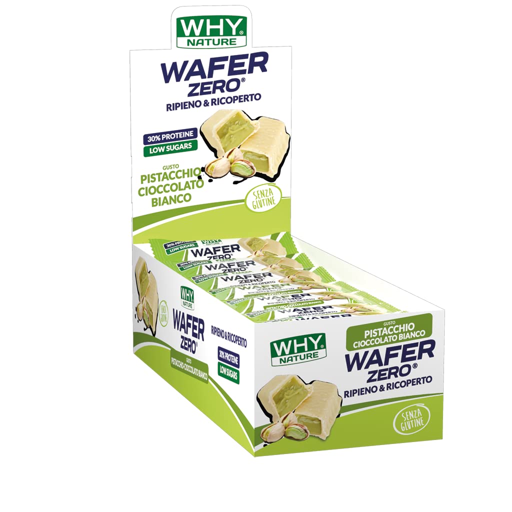 WHY NATURE WHY NATURE WAFER ZERO - Wafer waffle with protein filling pistachio and white chocolate flavour - Gluten free protein snack - Box of 24 pieces - 35 g