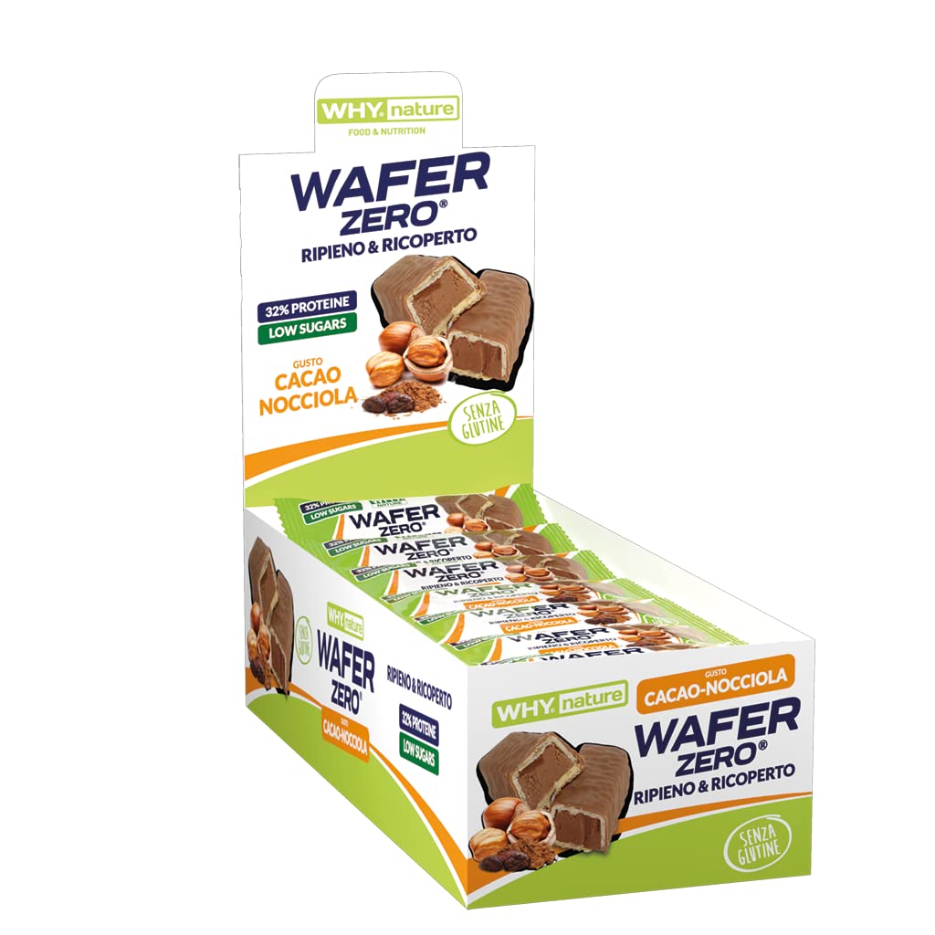 WHY NATURE WHY NATURE WAFER ZERO - Wafer waffle with protein topping Cocoa and hazelnut flavour - Gluten free protein snack - Box of 24 pieces - 35 g