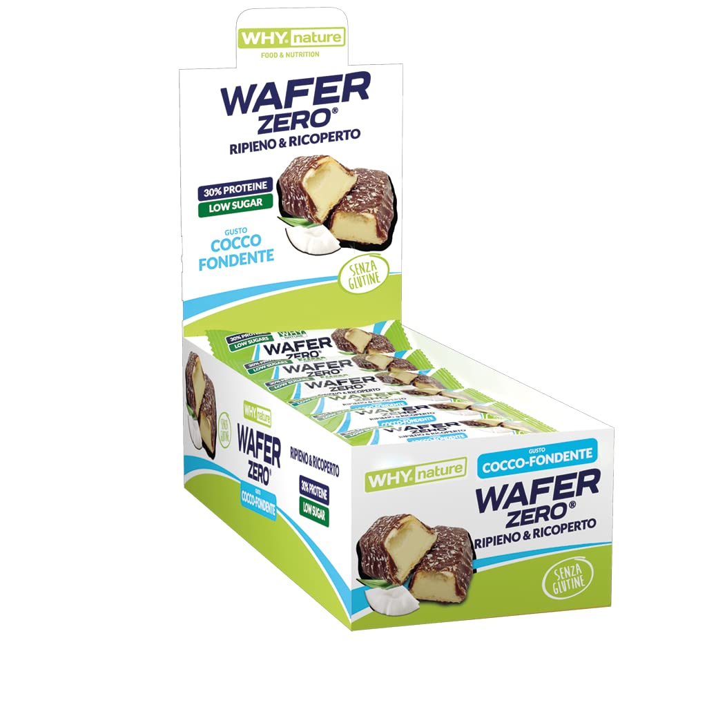 WHY NATURE WHY NATURE WAFER ZERO - Wafer waffle with protein topping Coconut and dark chocolate taste - Gluten free protein snack - Box of 24 pieces - 35 g