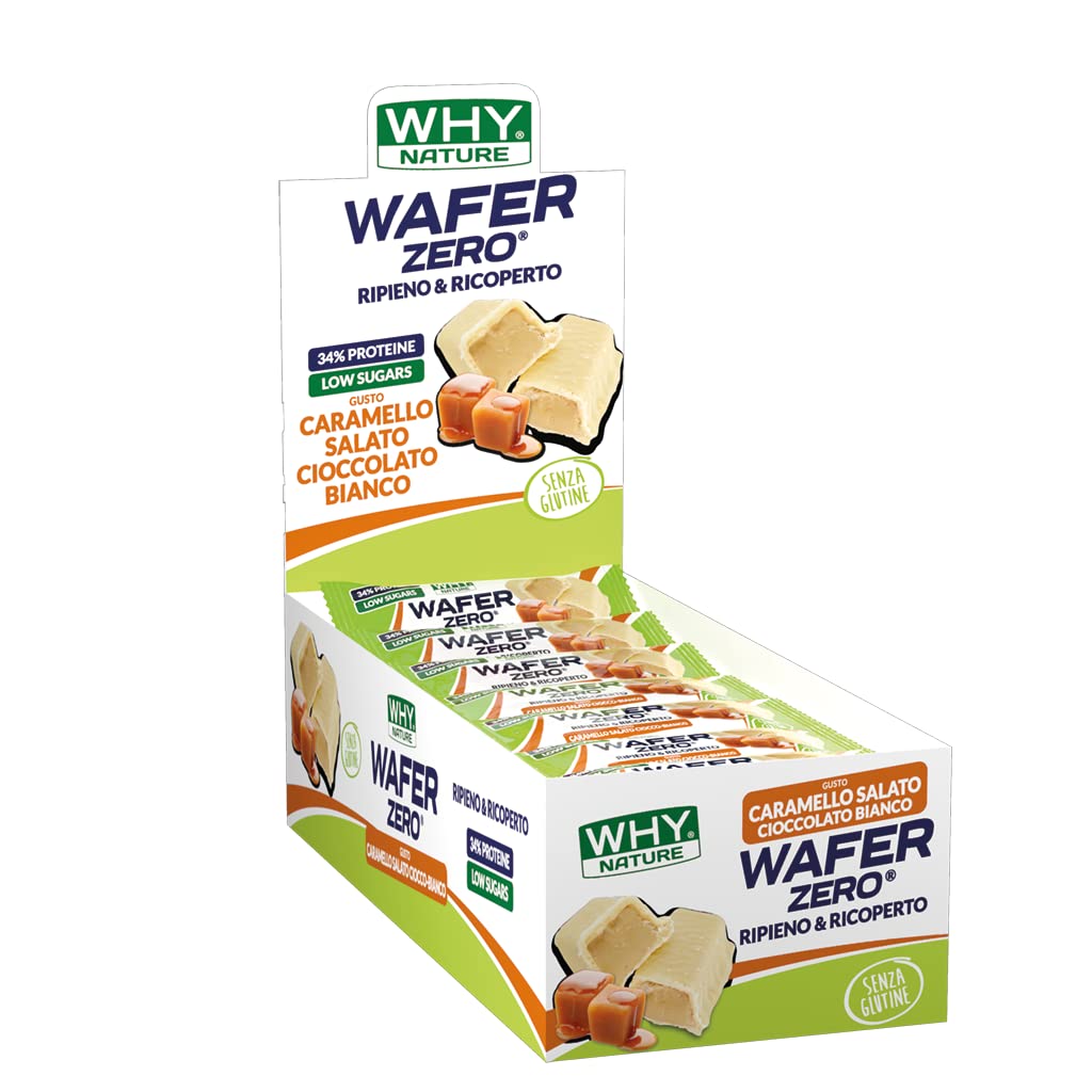 WHY NATURE WHY NATURE WAFER ZERO - Wafer waffle with protein topping salted caramel and white chocolate flavour - Gluten free protein snack - Box of 24 pieces - 35 g