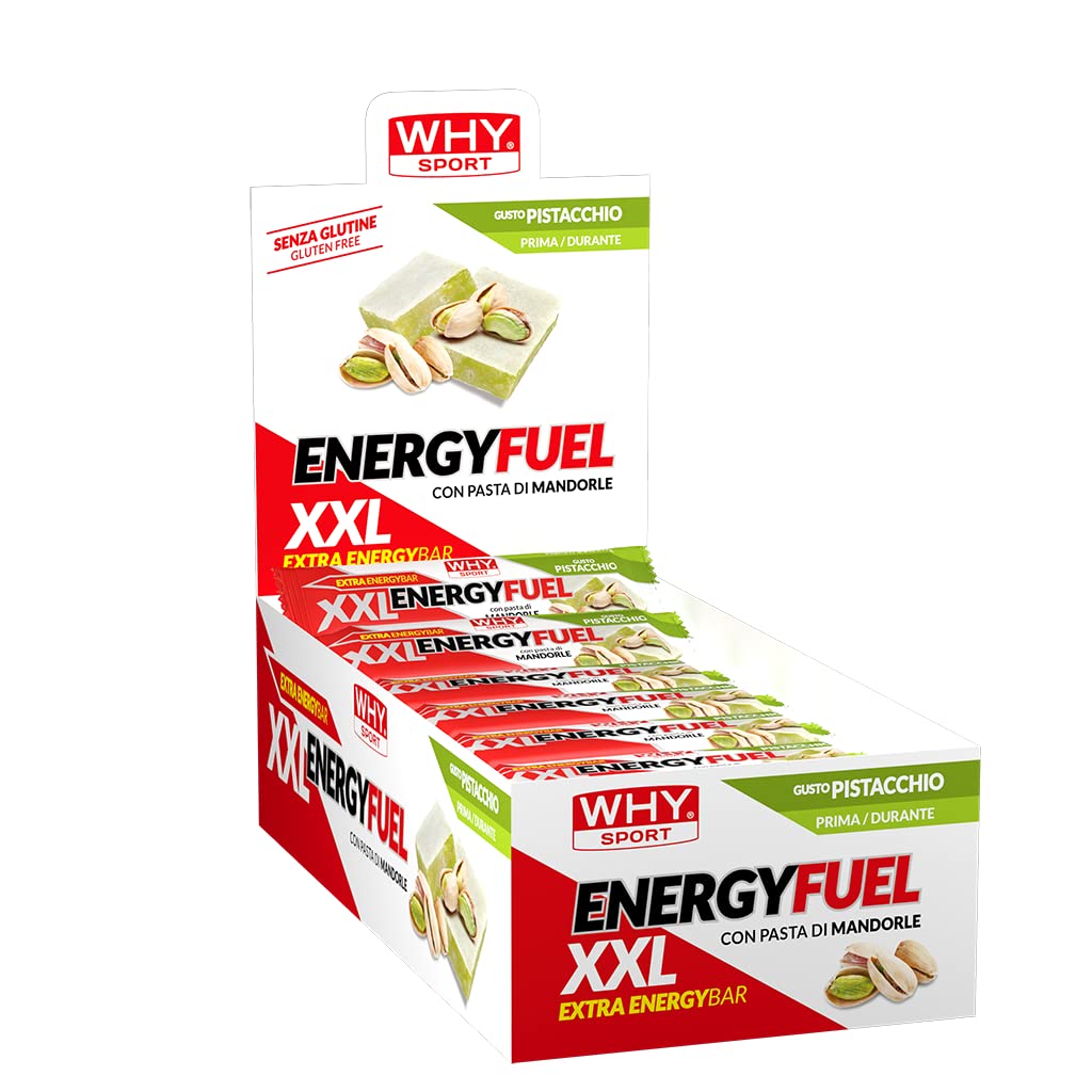 Why Sport Energy Fuel bars are the perfect choice for those seeking an energy boost. Each bar is packed with carbohydrates that aid in post-workout recovery or provide an energy boost before exercise. These bars contain sweet almond paste, giving them a delicious taste and a pleasant texture. The combination of carbohydrates and almond paste makes Why Sport Energy Fuel a tasty yet healthy snack, perfect for meeting your energy needs. Available in six fantastic flavors, Why Sport Energy Fuel bars are ideal for those who want a delicious snack without compromising their balanced diet. You can enjoy a variety of satisfying tastes while recharging your energy. In addition, Why Sport Energy Fuel bars are certified gluten-free, making them suitable for those with gluten intolerance. You can enjoy them worry-free, knowing you're consuming a healthy snack. Finally, each bar is enhanced with a crispy rice coating, providing a pleasant crunch. This feature adds an element of flavor and texture to the bars, making the eating experience even more satisfying. In short, Why Sport Energy Fuel bars are the perfect option for those looking for an energy boost. With sweet almond paste, a wide variety of flavors, gluten-free ingredients, and a touch of rice crunch, these energy bars will support you during your workout or provide the energy you need to tackle your day.WHY SPORT ENERGY FUEL XXL - Barres énergétiques avec pâte d'amande - Energy Bar Gusto Pistache - Boîte de 24 barrettes - 50 gDESCRIPTION DU PRODUIT Les barres Why Sport Energy Fuel sont le choix parfait pour ceux qui recherchent une explosion d'énergie. Chaque barre est chargée de glucides qui aident à la récupération post-entraînement ou fournissent une poussée énergétique avant un effort. Ces barres contiennent une pâte d'amande douce, ce qui leur donne un goût délicieux et une texture agréable. La combinaison de glucides et de pâte d'amande fait de Why Sport Energy Fuel un snack savoureux mais sain, parfait pour répondre à vos besoins énergétiques. Disponibles en six saveurs fantastiques, les barres d'énergie Why Sport Energy Fuel sont idéales pour ceux qui veulent une délicieuse collation sans compromettre leur alimentation équilibrée. Vous pouvez profiter d'une variété de goûts satisfaisants tout en rechargeant vos énergies. En outre, les Why Sport Energy Fuel sont certifiés sans gluten, ce qui les rend également adaptées pour ceux qui souffrent d'intolérance au gluten. Vous pouvez les déguster sans soucis, en sachant que vous consommez un snack sans danger pour votre santé. Enfin, chaque barre est enrichie d'un crisp de riz, ce qui donne un agréable effet croustillant. Cette caractéristique ajoute un élément de goût et de texture aux barres, ce qui rend l'expérience de consommation encore plus satisfaisante. En bref, les barres Why Sport Energy Fuel sont l'option parfaite pour ceux qui recherchent une explosion d'énergie. Avec de la pâte d'amande douce, un large choix de goûts, sans gluten et avec une touche croustillante de riz, ces barres énergétiques vous soutiendront pendant votre entraînement ou vous fourniront l'énergie nécessaire pour affronter votre journée.