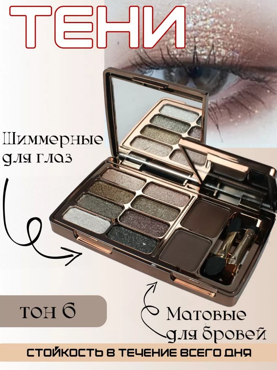 Набор состоит из теней 10 разных базовых цветов с мерцающими перламутровыми, шиммерными и светоотражающими пигментами на удобной подложке. Они легко создадут сияющие эффекты, стойкие и компактные. Бьюти - средство идеально подходит для моделирования и создания любого, даже профессионального макияжа глаз.