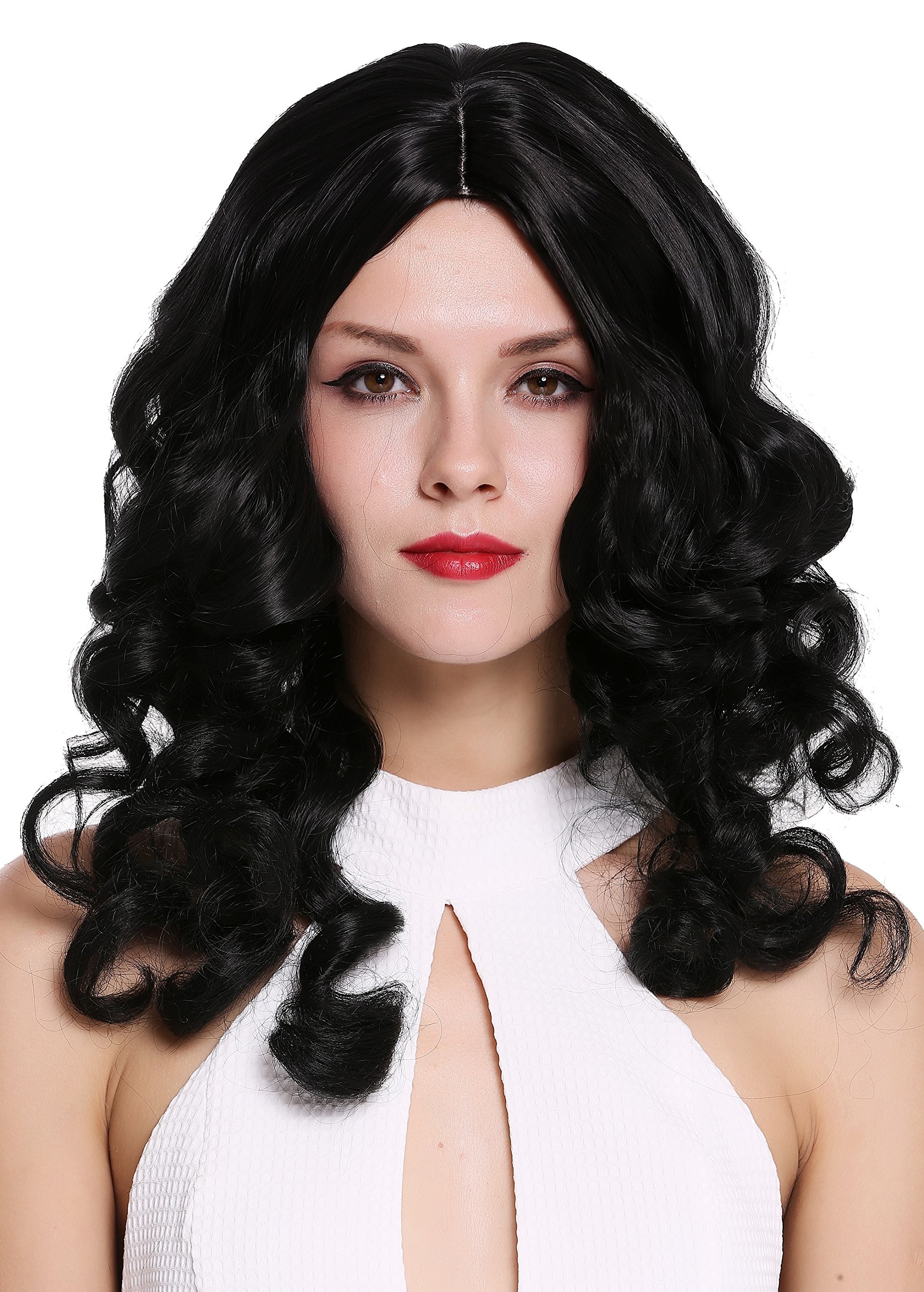 Brand: Wig Me Up.Article number: 6069-1b (FW010).Length: approx. 45 cm.Color code: 1b.Beautiful, medium -shaped women's wigs in velvet black with noble corkscrew curls or spiral cocks and splendid volume.