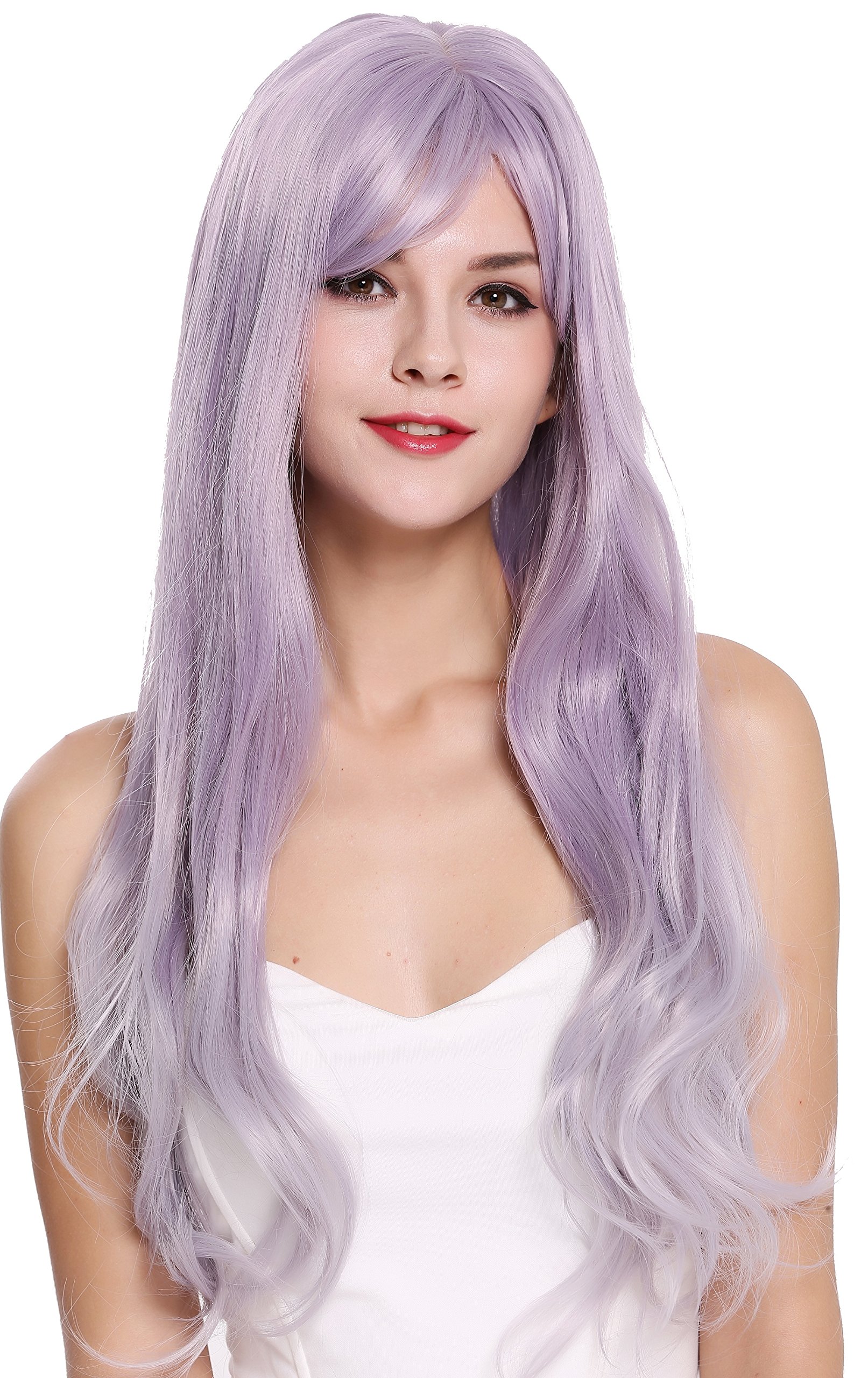 MapofBeauty Side Parting Bangs Charming Women Long Curly Full Hair Wavy Wig (Black)