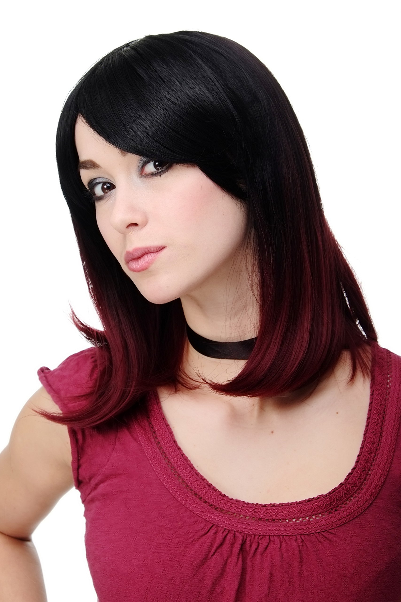 WIG ME UP - H9705-2F118 ladies wig quality wig ombre black + aubergine shoulder length straight curved tips