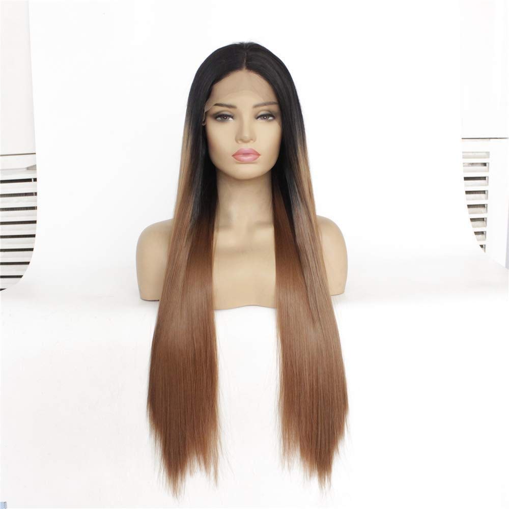 Wig Women S Shawl Long Straight Hair Chemical Fiber High Temperature Silk Half Hand Hook Hair Set Gradient Color Front Lace Wig Headgear