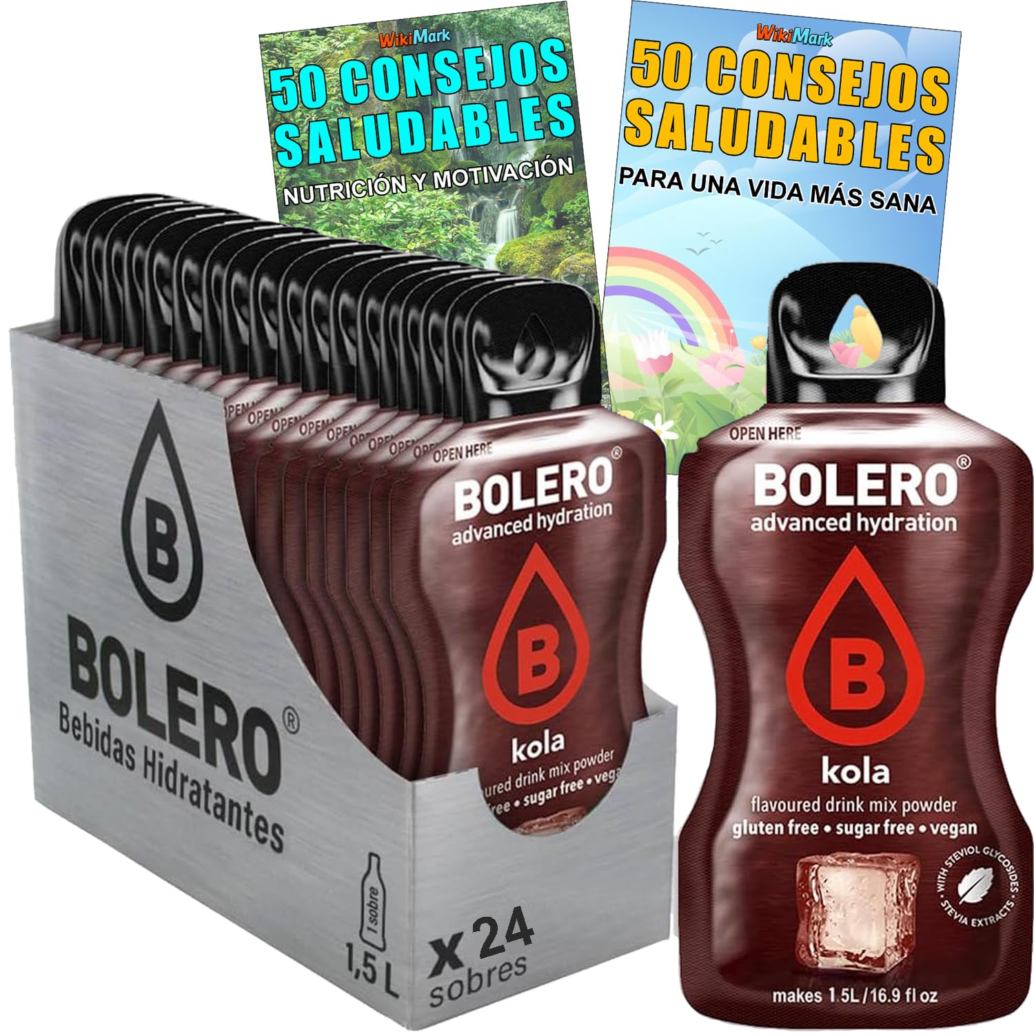 Bolero Cola Paquet de boissons hydratantes à la vitamine C sans sucre carte de 100 conseils santé et vie saine x WikiMark (24 unités) 24 Einheiten