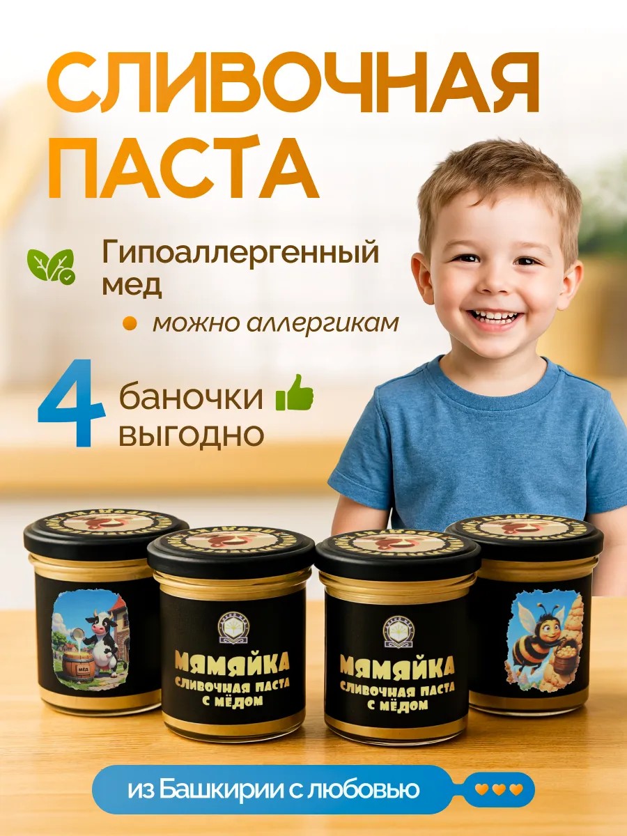 Мямяка -4 штуки набор -выгодно! Надолго хватит! Лучший полезный сладкий подарок! Уникальнейший продукт нашего времени! Аналогов нет! Мед гипоаллергенный сливочный, который можно даже аллергикам! У вас аллергия на мед? - Можно! У вас аллергия на лактозу и казеин? - Можно!