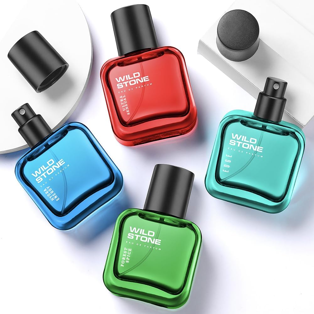 Wild Stone's Edge Ultra Sensual Hydra Energy & Forest Spice Luxury Perfume Gift Set for Men Pack of 4 (30ml Each) l EAU DE Perfume for Men l Premium Fragrance Gift Set