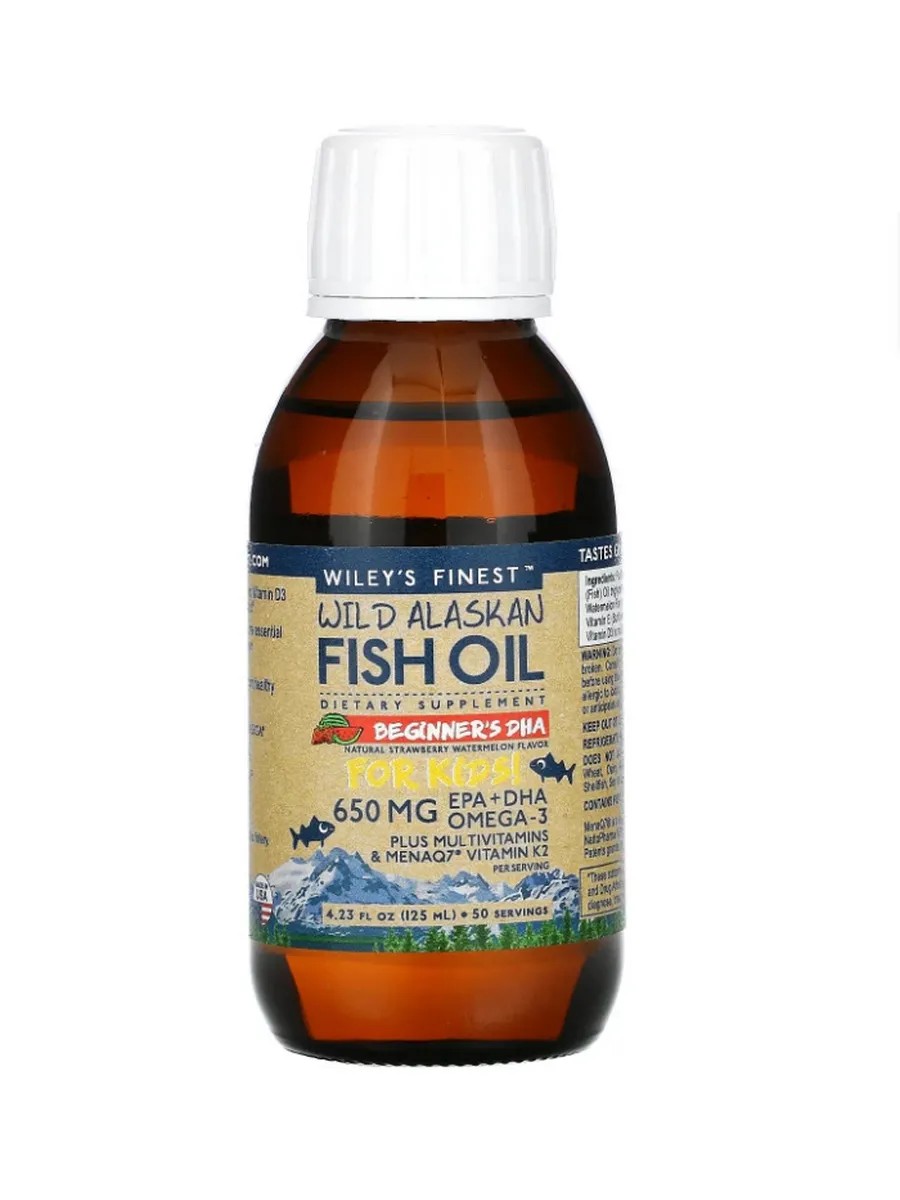 Wiley's Finest, Wild Alaskan Fish Oil for Kids – Поддержка мозга, иммунитета и костей в каждой капле! Подарите вашему ребенку здоровье с Wild Alaskan Fish Oil от Wiley's Finest! Wiley's Finest представляет уникальный рыбий жир для детей, обогащенный DHA, EPA, витаминами и MenaQ7 (витамин K2). Этот продукт создан для поддержки развития мозга, зрения, костей и иммунной системы вашего малыша. С добавлением натурального аромата клубники и дыни, он идеально подходит для смешивания с йогуртом, смузи или детским питанием.