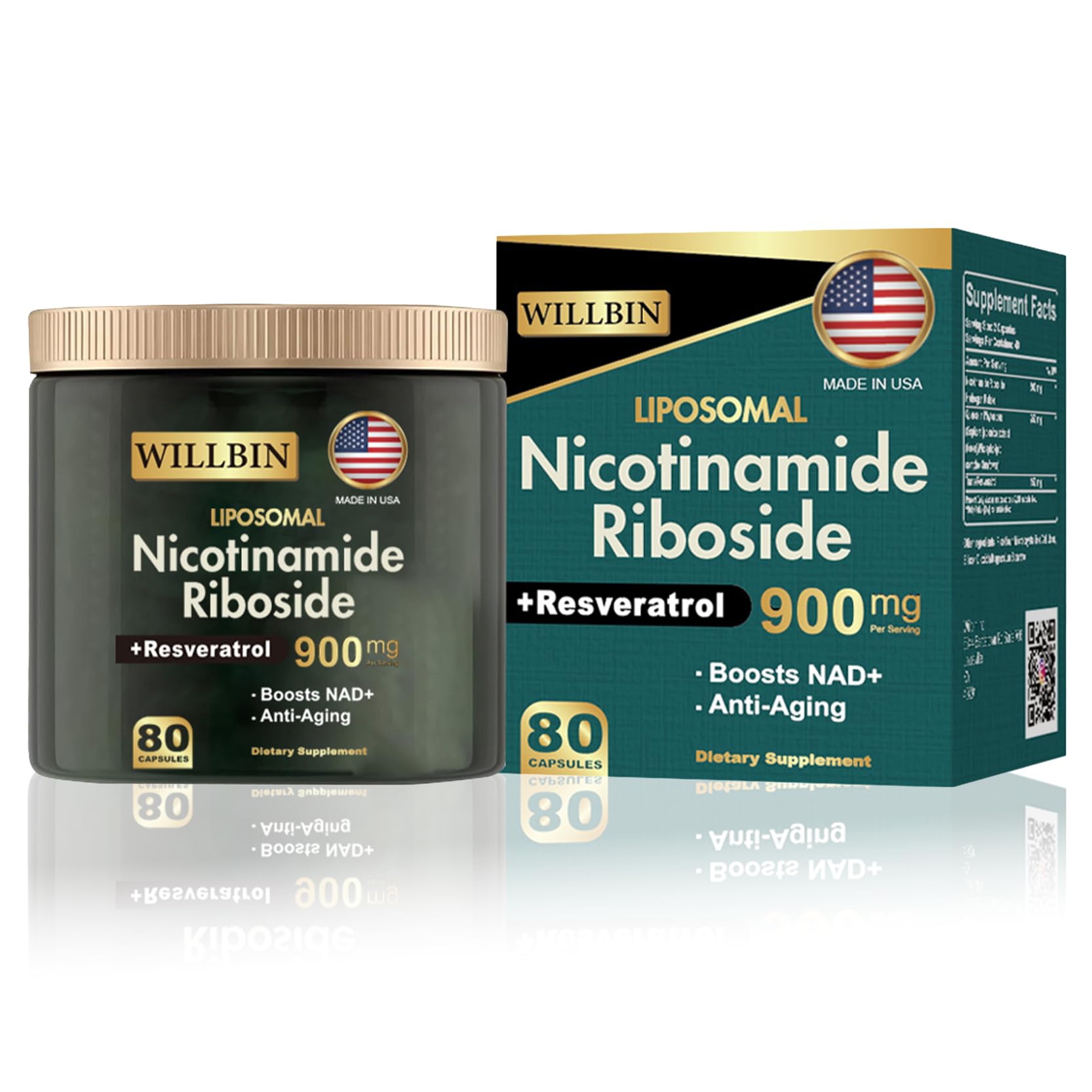 Willbin Liposomal NAD+ Supplement Nicotinamide Riboside with Resveratrol NAD Nicotinamide Riboside Boost Energy Focus Anti-Aging for Women & Men - 80 Vegan Capsules