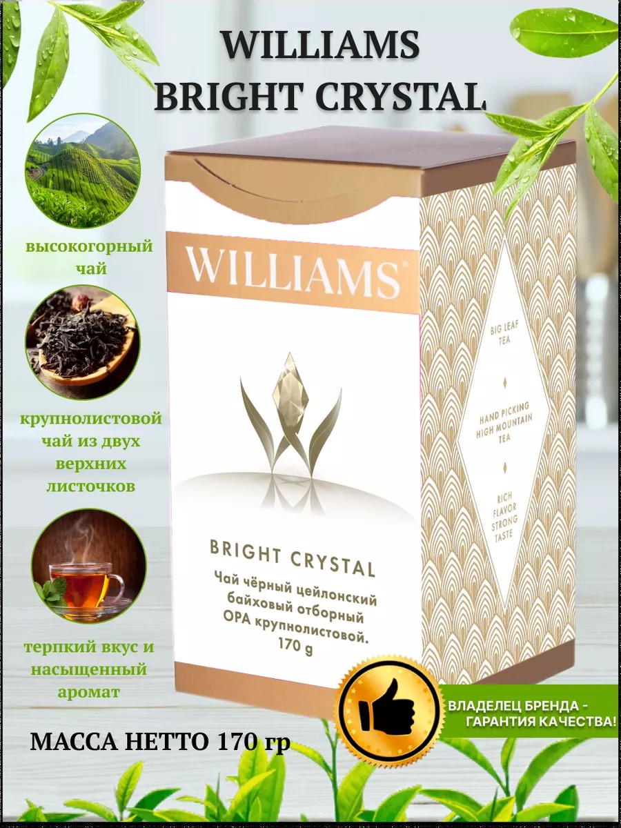 Чай черный WILLIAMS - BRIGHT CRYSTAL. Отборный черный цейлонский крупнолистовой чай OPA. 170г.