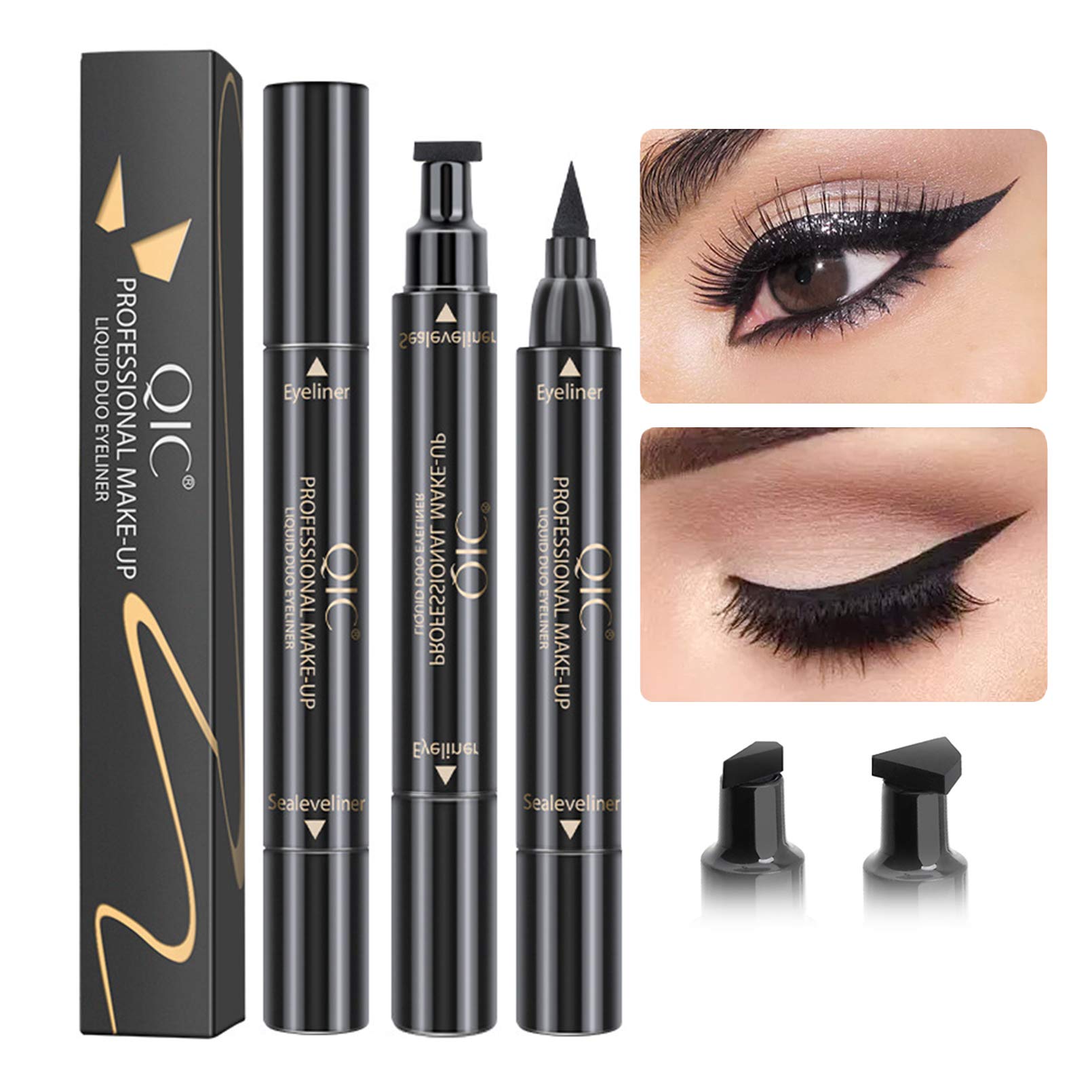 Winged Eyeliner Stamp FITDON Wing Liquid Eye liner Pen Waterproof Smudge-proof Long Lasting 2 Pack Dual Ended Eyeliner Pencil (Thick&Thin) Eyeliner_thin&thick