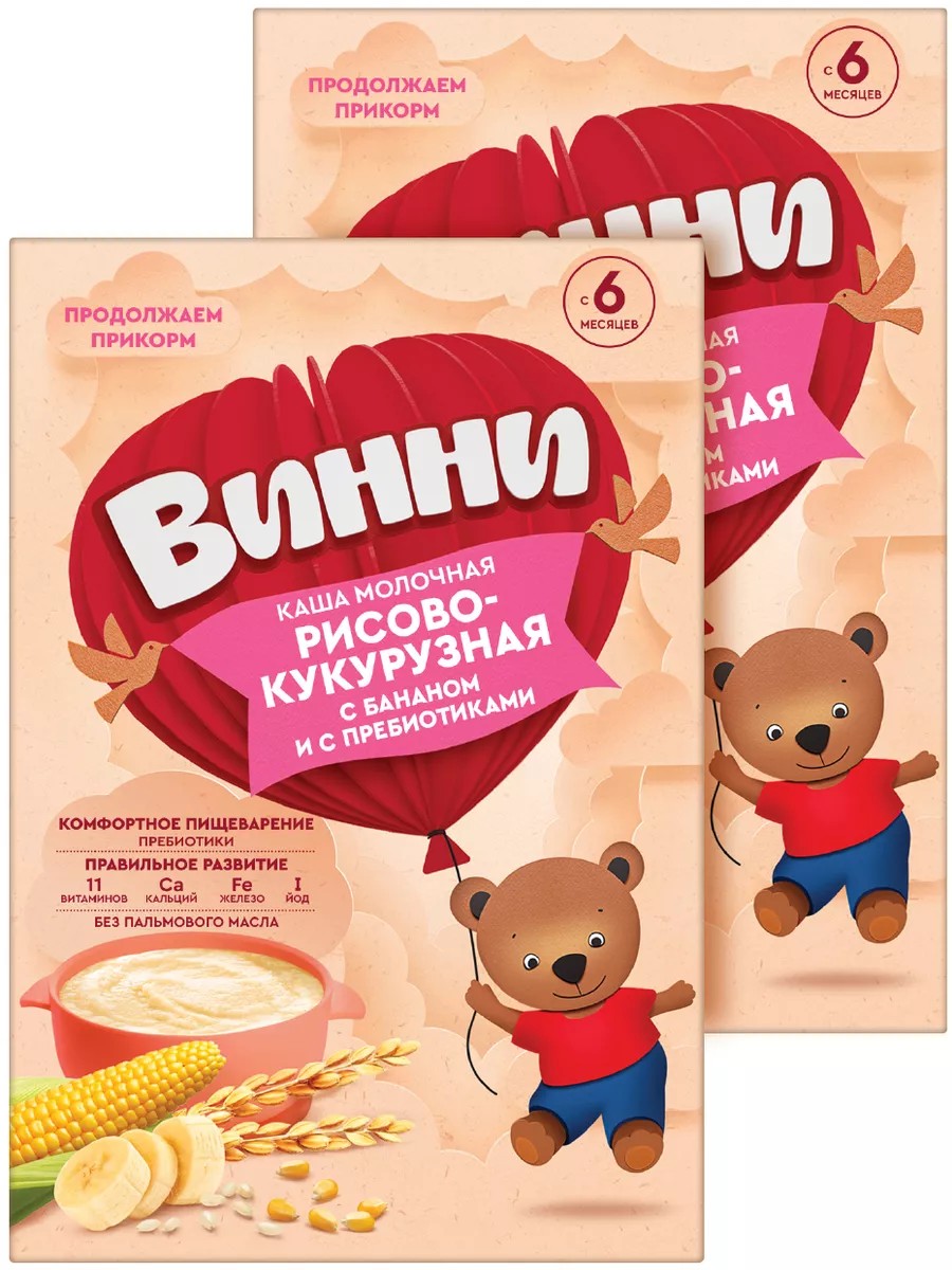 Каша детская молочная рис кукур банан с 6м,200г, 2шт