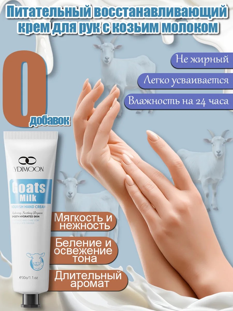 Contains goat's milk extract, replenishes moisture in the skin of the hands, makes it soft, hydrated, smooth and bright.
