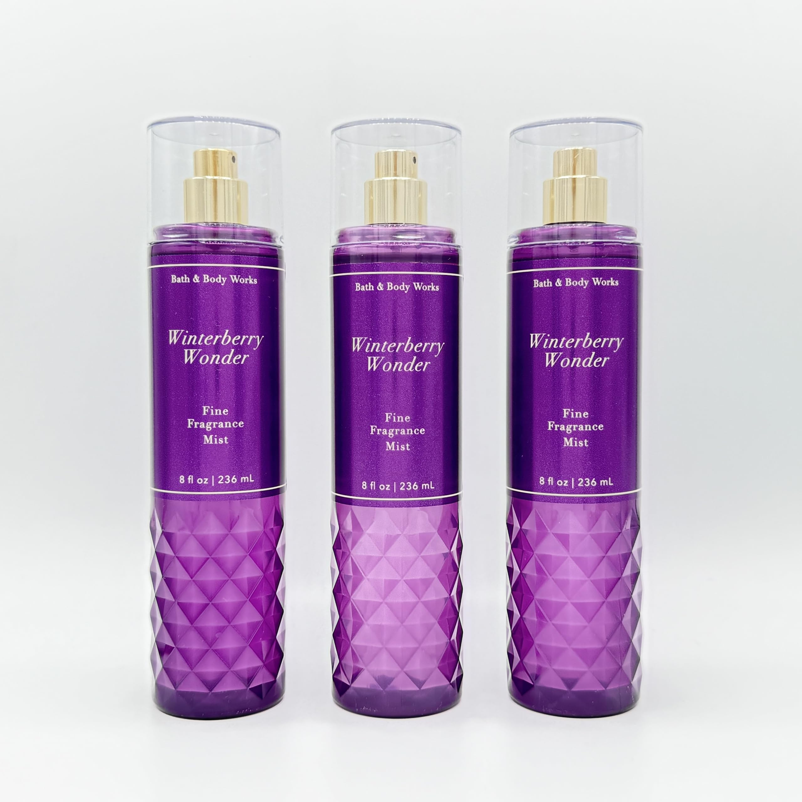 Spritz your skin all day everyday with this fabulous scent. Contains: Aloe for a refreshing way to fragrance your skin. Scent notes: Ruby Frost Winterberry, Sparkling Cranberry, Crystal Vanilla. Winterberry Wonder Bath Bundle | Three Fine Fragrance Body Mists, Full Size Bottles (8oz Each).