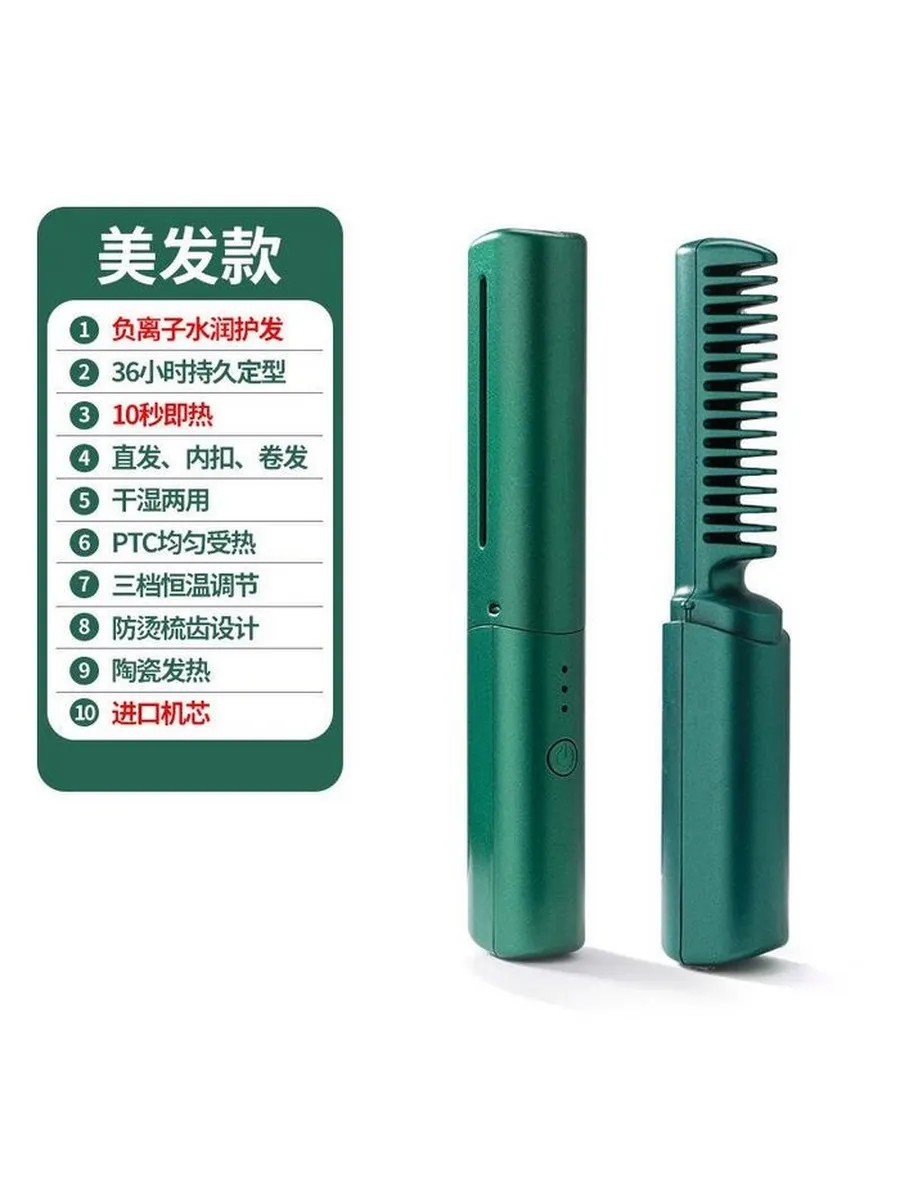 Беспроводная расческа-выпрямитель, Зеленый, 3 настр. темп.