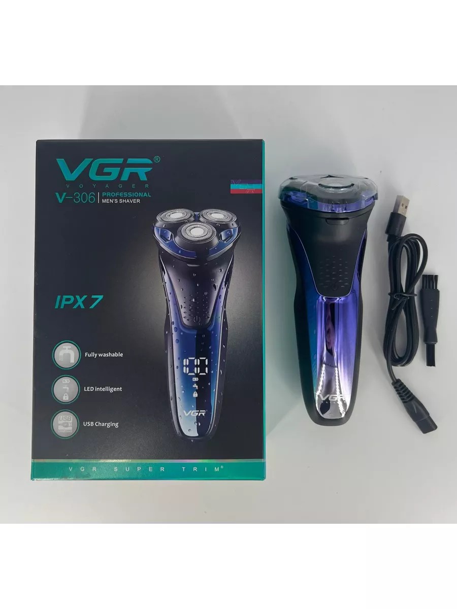 The VGR V-306 electric razor is designed specifically for men who want to always look their best. It features a trimmer and is completely waterproof. It's convenient to take on the go, as the battery lasts a long time, and many shave every day. The razor is completely washable and can be easily rinsed under running water for cleaning. It can also be used with water, foam, gel, or even in the shower. And the three floating shaving heads, which maintain close contact with the skin, provide a comfortable and easy shave.