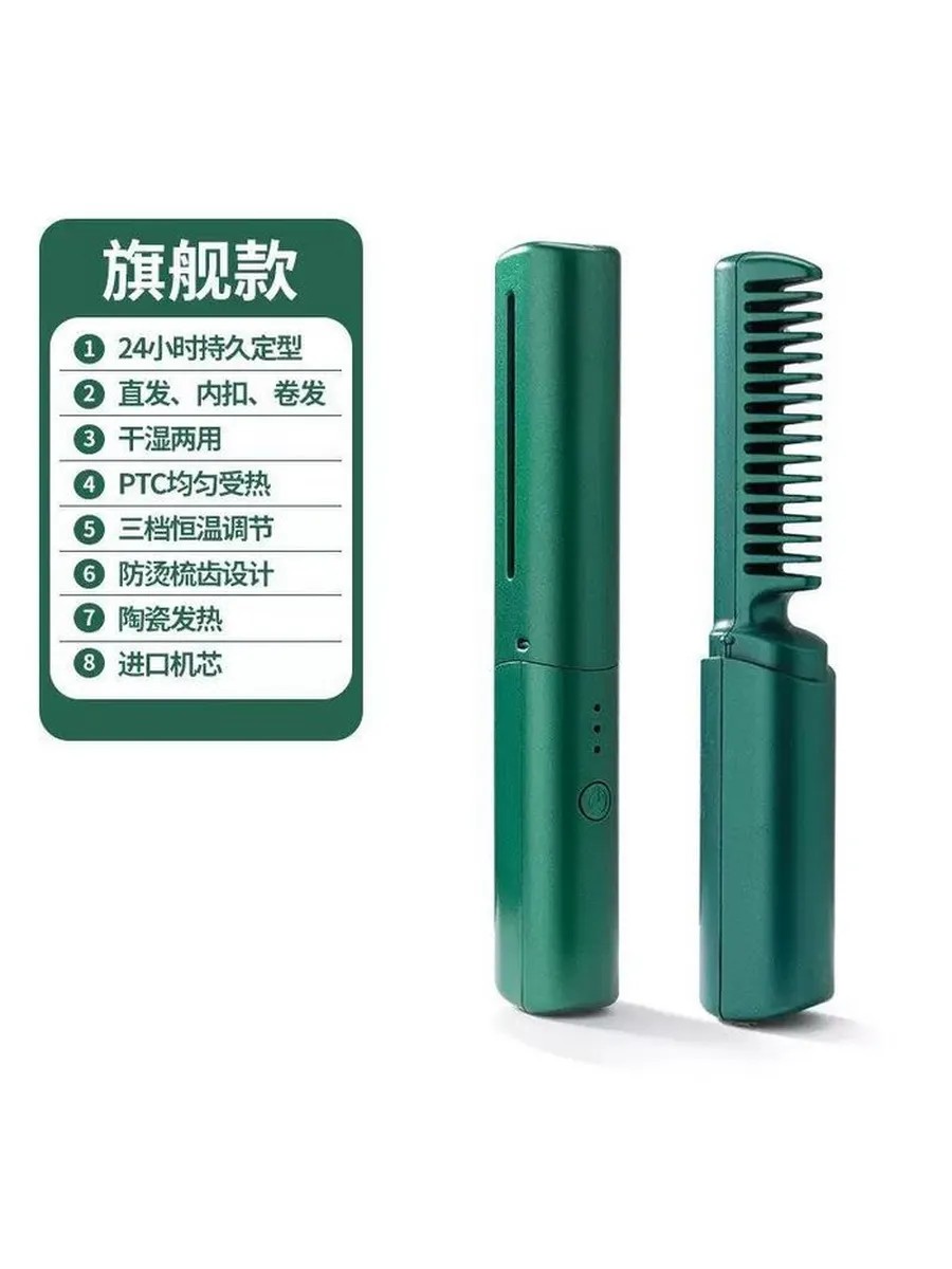 Беспроводная расческа-выпрямитель с технологией ионизации (Цвет павлиний зеленый)