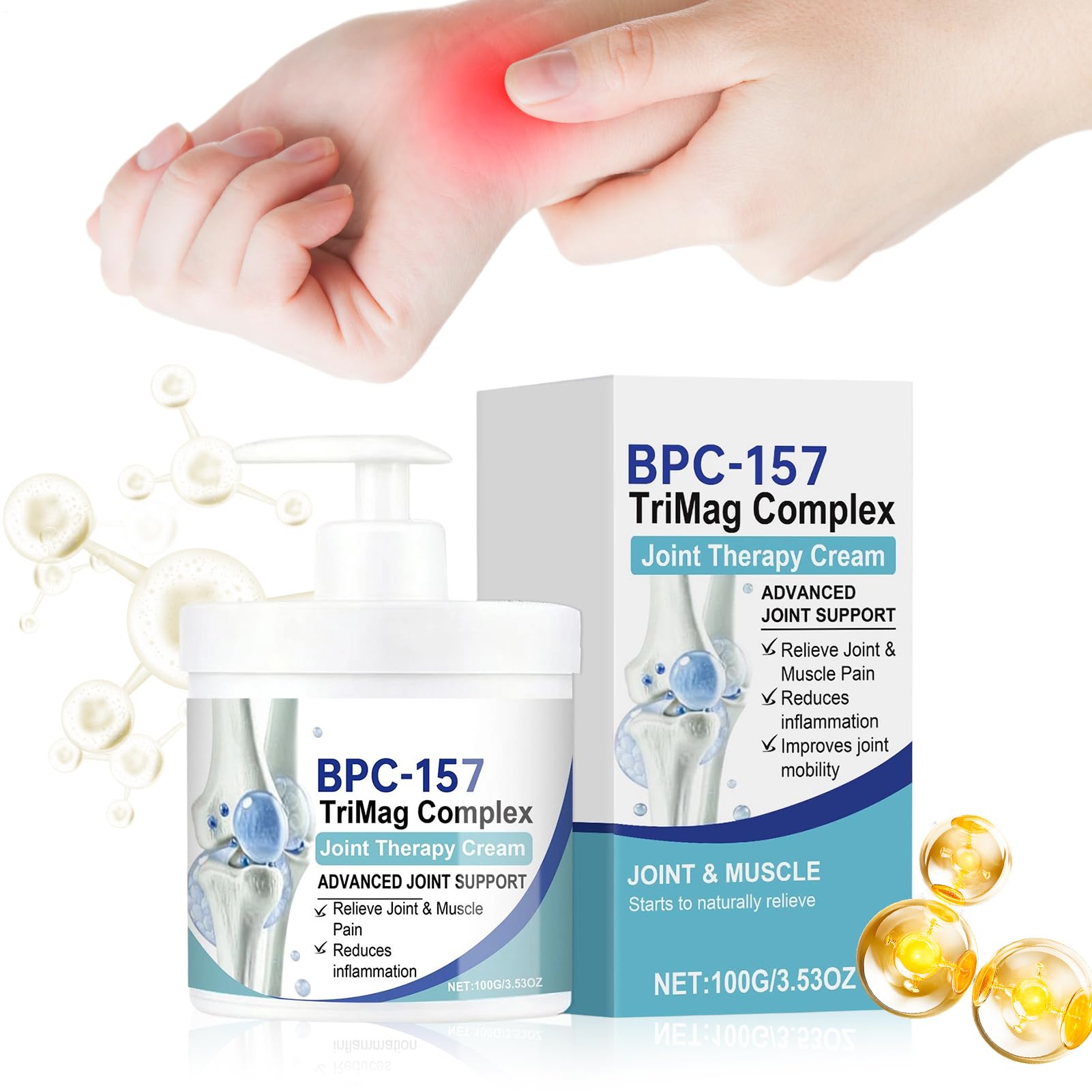 Fast Soothing Cream is a carefully formulated cream designed to provide relief to joints and muscles throughout the body. Whether you need support for your knees, feet, legs, shoulders, neck, hands, ankles, hips, arms, or wrists, this cream offers soothing comfort where it's needed most. Apply it to affected areas such as your back, legs, arms, or joints for targeted relief. Fast Soothing Cream is a reliable choice for those seeking comfort and relaxation in their daily routine. Discover the benefits of a cream designed to meet your body's needs with natural care and meticulous attention to detail. Specifications Total Contents: Approx. 100g Gross Weight: Approx. 141.3g Product Size: Approx. 6.6 x 6.6 x 10.1 cm 2.6 x 2.6 x 3.98 inches Not suitable for pregnant women, sensitive skin, or open wounds. Tip: This product is for external use only and should not be used as a substitute for medication. Use with caution during pregnancy, breastfeeding, and on the baby use with caution if you have a reaction to mugwort! Children should use this product under adult supervision. Product List: 1 Joint Cream Notes: Results may vary from person to person discontinue use if discomfort occurs. Due to different lighting and screen settings, the product color may be slightly different from the image. Due to manual measurement, please allow a 1-3 cm size difference. SAFETY WARNING Not applicableMultiple and Comprehensive Uses: Relieves muscle tension, aids knee joint mobility, and offers versatile application for complete body comfort. This cream provides sustained benefits for daily use, promoting lasting muscle and joint relaxation for a feeling of lightness and well-being every day. Lightweight and Convenient Care Solution: With fast absorption and a non-sticky finish, this knee cream allows for effortless application for daily care. It helps you enjoy its benefits anytime, anywhere, without hassle or discomfort, while providing gentle relief and continuous hydration for regular and comfortable use. Helps Restore Flexibility: This cream specifically helps with knee discomfort and joint fatigue, providing deep-penetrating nourishment that restores natural flexibility. Gentle enough for consistent daily application, it is suitable for regular use without irritating the skin. Its unique formulation absorbs quickly to nourish and soothe joints, promoting increased flexibility and long-lasting comfort. Ideal for active individuals. Safe for Sensitive Skin: The nourishing and gentle ingredients in this joint cream provide a light, non-sticky consistency, allowing for smooth and comfortable massage application. It remains soft and non-irritating for extended use, specially formulated for sensitive skin for safe daily care. A Wonderful and Useful Gift: This joint cream makes an exceptional gift for family and friends, ideal for the holidays or for expressing your thoughtfulness with its practical benefits for everyday use. It combines effectiveness and simplicity, offering lasting comfort and consistent support, making it invaluable for those seeking to improve their joint health. Giving this product is sharing a moment of care and practicality in someone's life.wiroouia Crème De Soulagement Des Articulations Pour Les Genoux - 100g Crème De Soulagement Des Articulations Et Muscles - Baume Apaisant Pour La Cheville Et Le Poignet Pour Dos Épaules Cou BrasDESCRIPTION DU PRODUIT DESCRIPTION DU PRODUIT La Crème Apaisante Rapide est une crème soigneusement développée pour apporter un soulagement aux articulations et aux muscles de tout le corps. Que vous ayez besoin d'un soutien pour vos genoux, pieds, jambes, épaules, cou, mains, chevilles, hanches, bras ou poignets, cette crème un confort apaisant là où il est le plus nécessaire. Appliquez-la sur les zones affectées comme le dos, les jambes, les bras ou les articulations pour un soulagement ciblé. La Crème Apaisante Rapide est un choix fiable pour ceux qui recherchent confort et relaxation dans leur routine quotidienne. Découvrez les bienfaits d'une crème conçue pour répondre aux besoins de votre corps avec des soins naturels et une attention particulière aux détails. Spécification Contenance : environ 100g Poids brut : environ 141,3g Taille du produit: environ 6,6x6,6x10,1 cm 2,6x2,6x3,98 pouces Ne convient pas aux femmes enceintes, aux peaux sensibles ou aux plaies ouvertes. Astuce : Ce produit est destiné à un usage externe uniquement et ne doit pas être utilisé comme substitut à un médicament. Utiliser avec prudence pendant la grossesse, l'allaitement et pour le bébé à utiliser avec prudence si vous avez une réaction à l'armoise ! Les doivent utiliser ce produit sous la d'un adulte. Liste de produits : 1 crème articulaire Remarques : Les résultats peuvent varier d'une personne à l'autre cesser l'utilisation en cas d'inconfort. En raison des différents paramètres d'éclairage et d'écran, la couleur du produit peut être légèrement différente de celle de l'image. En raison de la différence de mesure manuelle, veuillez permettre une différence de taille de 1 à 3 cm. AVERTISSEMENT DE SÉCURITÉ N'est pas applicableUtilisations Multiples et Complets: Soulage les tensions musculaires, aide à la facilité de l'articulation du genou et offre une application polyvalente pour un confort corporel complet. Cette crème des avantages soutenus pour une utilisation quotidienne, en favorisant une détente musculaire et articulaire durable pour une sensation de légèreté et de bien-être au quotidien. Solution de Soin Légère et Pratique: Avec une absorption rapide et une finition non collante, cette crème pour les genoux permet une application sans effort pour les soins quotidiens. Elle vous aide à profiter de ses bienfaits à tout moment et en tout lieu, sans tracas ni inconfort, tout en offrant un soulagement doux et une hydratation continue pour un usage régulier et confortable. Aide à la Restauration de la Souplesse: Cett