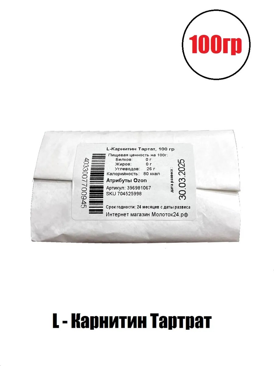 L-Карнитин Тартрат порошок, 100 гр