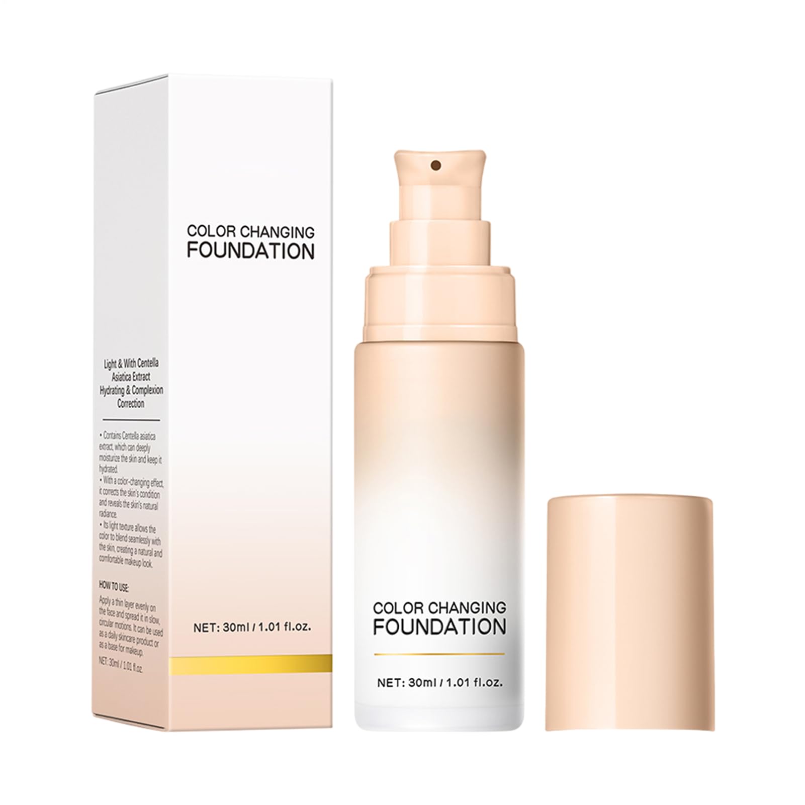 Experience the right combination of skin care and coverage with our intelligent makeup foundation. The innovative formula automatically adjusts to individual skin tones while providing buildable coverage that conceals imitations. Specifications: Net capacity: 30 ml. Product Dimensions: As shown in the picture Shelf life: 3 years Features: color-changing base, light base makeup, lasting makeup effect Contents of the delivery: 1 x Color Change Foundation Note: Due to the light and screen setting difference, the item's color may be slightly different from the pictures. Please allow 1-2cm error due to manual measurement. SAFETY WARNING Not applicableSeamless Fusion Radiant: The color-changing foundation guarantees a natural aesthetic by seamlessly merging with your skin, providing oil control for extended wear and a pore-blurring effect. Ideal for achieving an effortless glow at outdoor events or indoor photo shoots – for a radiant, even complexion in any light and occasion. Color Matching Versatile and Reliable: With the ability to correct redness and dullness, this color-changing foundation uses color matching technology to deliver a radiant and seamless finish. It makes your skin look refreshed and vibrant, both indoors and out. The long-lasting effect supports a vital and energetic skin appearance in different situations. Easy integration: This Color Match Foundation guarantees a fresh, radiant complexion thanks to its quick application design and greatly simplifies the beauty routine. This allows users to effortlessly achieve a polished result even when traveling or with hectic schedules, without long preparation time. The foundation supports a nimalistic approach and gives the skin a natural, dewy finish, which convinces on the go or in stressful everyday life. Stable Makeup Performance: The innovative formula of this skin-friendly foundation guarantees moisture resistance, oxidation and darkening, providing a stable and long-lasting finish that stays perfect even during activities such as shopping trips or casual weekend plans. It gives a natural, long-lasting skin feeling without fading or irregularities. Gentle skin compatibility: This color-matching foundation is particularly gentle and skin-friendly designed for sensitive skin. It supports the skin's natural defenses, reliably soothes redness and guarantees a perfect finish without irritation. Whether in everyday life or during long events, it provides reliable protection and is ideal for smooth use. The foundation combines care and coverage to provide a pleasant feeling of wearing and to create redness.Corrigerende foundation, 30 ml make-up concealer, kleur-passende foundation, voor reizen, dating, pendelen, vergadering, tuinieren en avondjes 4 Ervaar de juiste combinatie van huidverzorging en afdekking met onze intelligente make-up stichting. De innovatieve formule past zich automatisch aan de individuele huidtinten aan en biedt tegelijkertijd een bouwbare afdekking die imitaties verbergt. Specificaties: Netinhoud: 30 ml. Productafmetingen: zoals getoond in de afbeelding Houdbaarheid: 3 jaar Kenmerken: kleurveranderende basis, lichte basismake-up, duurzaam make-up-effect Inhoud van de levering: 1 x kleurwisselfundering. Opmerking: Vanwege het verschil in licht- en beeldscherminstellingen kan de kleur van het artikel enigszins afwijken van de afbeeldingen. Houd rekening met een foutmarge van 1-2 cm door handmatige meting. VEILIGHEIDSWAARSCHUWING Niet van toepassingNaadloze fusie stralend: de kleurveranderende foundation garandeert een natuurlijke esthetiek door naadloos samensmelten van je huid, biedt oliecontrole voor verlengd draagcomfort en een poriënvervagend effect. Ideaal om een moeiteloze gloed te bereiken bij outdoor-evenementen of indoor foto-ternes – voor een stralende, gelijkmatige teint in elk licht en elke gelegenheid. Kleuraanpassing Veelzijdig en betrouwbaar: met het vermogen om roodheid en dofheid te corrigeren, maakt deze kleurveranderende foundation kleuraanpassingstechnologie gebruik om een stralende en naadloze afwerking te leveren. Het zorgt ervoor dat je huid er verfrist en levendig uitziet, zowel binnen als buiten. De langdurige werking ondersteunt een vitale en energieke huidbeeld in verschillende situaties. Prlemloze integratie: deze Color Match Foundation garandeert een frisse, stralende teint dankzij het snelle applicatieontwerp en vereenvoudigt de beauty-routine aanzienlijk. Hiermee kunnen gebruikers ook op reis of bij hectische schema's moeiteloos een gepolijst resultaat bereiken, zonder lange voorbereidingstijd. De foundation ondersteunt een nimalistische aanpak en geeft de huid een natuurlijke, dewy finish, die onderweg of in het stressvolle dagelijks leven overtuigt. Stabiele make-upprestaties: de innovatieve formule van deze huidvriendelijke foundation garandeert vochtbestendigheid, oxidatie en verduistering en biedt een stabiele en duurzame afwerking die perfect blijft, zelfs tijdens activiteiten zoals winkeltochten of losse weekendplannen. Het geeft een natuurlijk, langdurig huidgevoel zonder verbleken of onregelmatigheden. Zachte huidverdraagzaamheid: deze kleur-passende foundation is bijzonder zacht en huidvriendelijk ontworpen voor de gevoelige huid. Het ondersteunt de natuurlijke afweer van de huid, kalmeert roodheid betrouwbaar en garandeert een perfecte afwerking zonder irritatie. Of het nu in het dagelijks leven of bij lange evenementen is, hij biedt betrouwbare bescherming en is ideaal voor een soepel gebruik. De foundation combineert verzorging en dekking om een aangenaam draaggevoel te geven en roodheid te creëren.