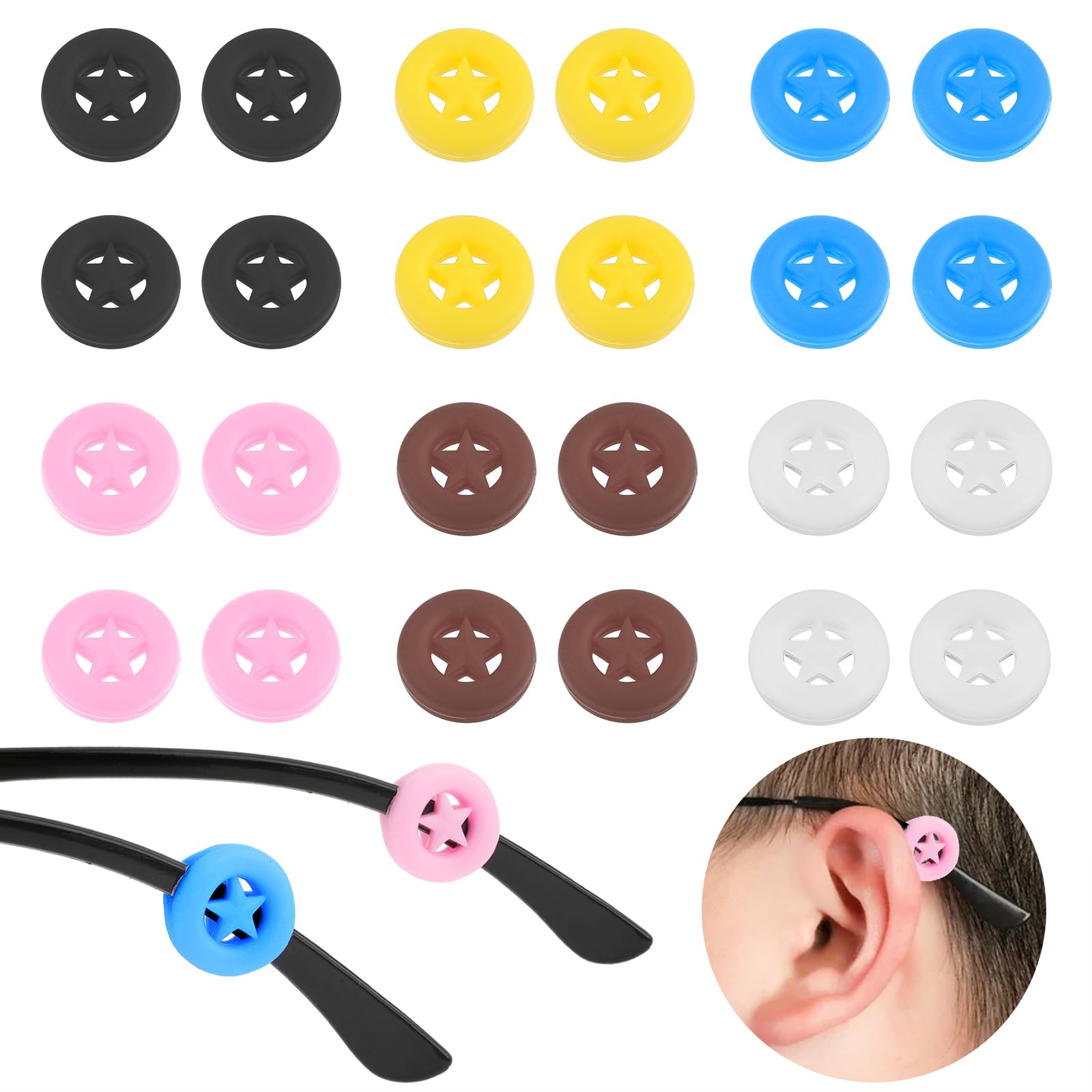 Category: anti-slip protective covers for glasses Color: yellow+black+white+light blue+pink+brown Material: silicone Dimensions: 0.6 × 0.6 × 0.2 inch/ 1.5 × 1.5 × 0.5 cm List: 24 pieces x non -slip glasses cover Characteristics: 1. Anti-slip ring made of silicone, candy-colored ear protector and ear bracket 2. Comfortable ear clips to protect the glasses from slipping ?Glasses accessories? 12 pairs of glasses in different colors, which you can wear depending on the mood.The sunglasses glasses holder is also very suitable for use in sports, fishing, running, etc. ?Effective slip protection? Multiple-colored glasses ear clips can effectively help to fix the glasses in the correct position and prevent slipping.The soft and elastic glasses slide protection can be easily attached and worn without hesitation.?Lightweight? A few comfort ear brackets is light.The size of 0.6 × 0.6 × 0.2 inches does not contaminate your ears when wearing.The glasses holders behind the ear are so comfortable that you almost forget them.?Special design? The star -shaped glasses holder is more fascinating.The cute glasses slip protection makes your glasses look very colorful.You can choose between non -slip ear pads in different colors that you can use together.?High quality ear clips? The glasses ear grabs are made of high quality, soft silicone material.The elastic glasses accessory design offers more space for use.The sports ear pads can be easily used with different glasses styles.The ears for glasses enable you to carry the glasses comfortably every day. Kategorie: Anti-Rutsch-Schutzhüllen für Brillen Farbe:Gelb+Schwarz+Weiß+Hellblau+Rosa+Braun Material: Silikon Abmessungen: 0,6 × 0,6 × 0,2 Zoll/ 1,5 × 1,5 × 0,5 cm Liste: 24 Stück x rutschfeste Brillenhülle Eigenschaften: 1. Anti-Rutsch-Ring aus Silikon, bonbonfarbene Ohrenschützer und Ohrbügel 2. Bequeme Ohrclips, um die Brille vor dem Verrutschen zu schützen?Brillenzubehörset?12 Paar Brillenbügelhülsen in verschiedenen Farben, die Sie je nach Stimmung tragen können. Der Sonnenbrillen-Brillenhalter eignet sich auch sehr gut für den Einsatz beim Sport, Angeln, Laufen usw. ?Effektiver Rutschschutz?Mehrfarbige Brillen-Ohrclips können effektiv dabei helfen, die Brille in der richtigen Position zu fixieren und ein Verrutschen zu verhindern. Der weiche und elastische Brillen-Rutschschutz lässt sich einfach anbringen und bedenkenlos tragen. ?Leichtgewicht?Ein Paar Komfort-Ohrbügel ist leicht. Die Größe von 0,6 × 0,6 × 0,2 Zoll belastet Ihre Ohren beim Tragen nicht übermäßig. Die Brillenhalter hinter dem Ohr sind so bequem, dass man sie fast vergisst. ?Spezielles Design? Der sternförmige Brillenhalter ist faszinierender. Der niedliche Brillen-Rutschschutz lässt Ihre Brille sehr farbenfroh aussehen. Sie können zwischen rutschfesten Ohrpolstern in verschiedenen Farben wählen, die Sie zusammen verwenden können. ?Hochwertige Ohrclips?Die Brillen-Ohrgreifer bestehen aus hochwertigem, weichem Silikonmaterial. Das elastische Brillenzubehör-Design bietet mehr Platz für die Nutzung. Die Sport-Ohrpolster lassen sich bequem mit verschiedenen Brillenstilen verwenden. Die Ohrbügel für Brillen ermöglichen Ihnen ein bequemes Tragen der Brille jeden Tag.