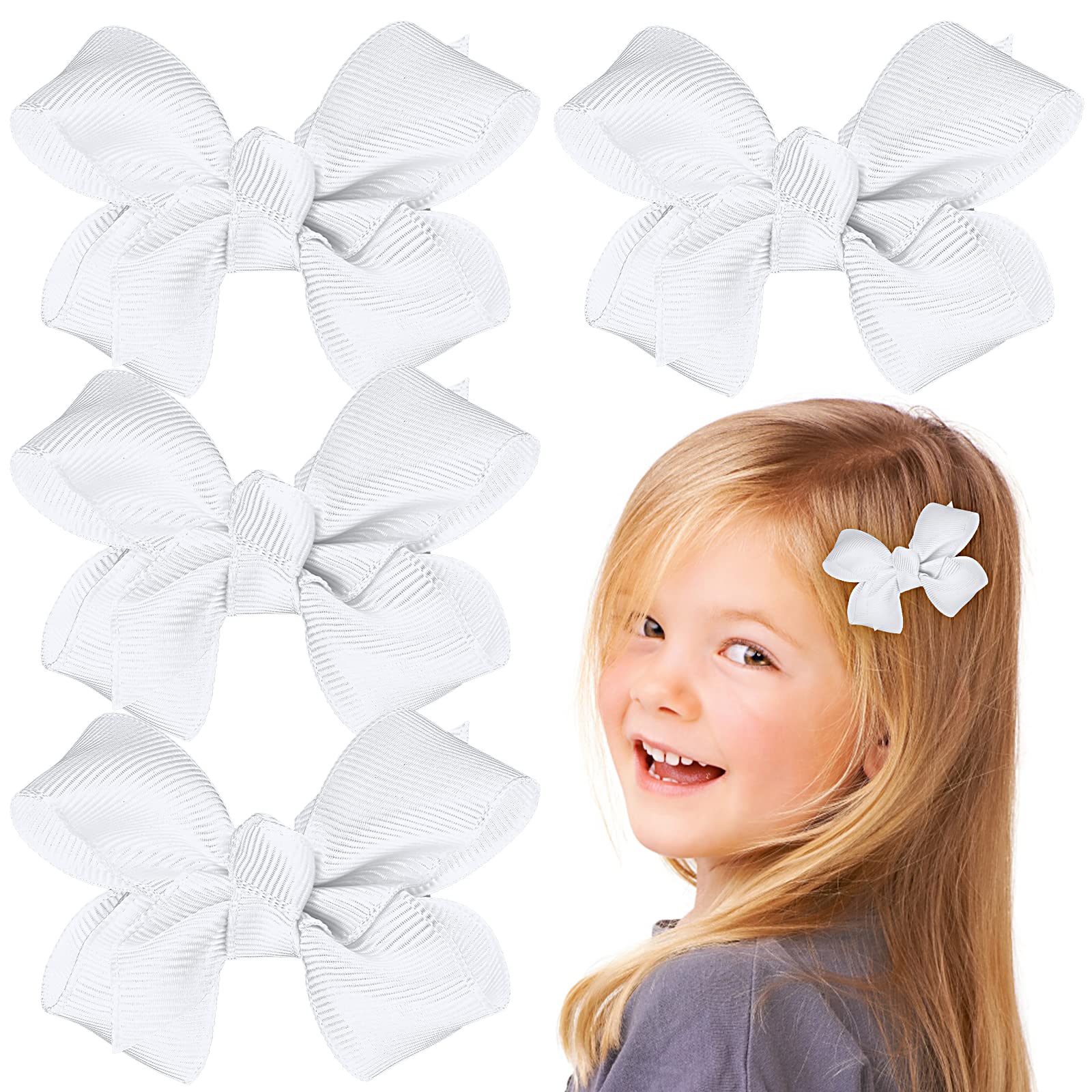 3 Inch Hair Bows for Girls 4 Pieces Grosgrain Ribbon Alligator Clips bows Clips Hair Accessories For Babies Kids Toddlers Teens Gift Main Function: Children's hair clips, hair styling tools, durable, alligator clips Specifications: Color: White Size: 3 × 1.38 × 0.79 inches/7.62 × 3.5 × 2 cm Package includes: 4pcs × hairpin