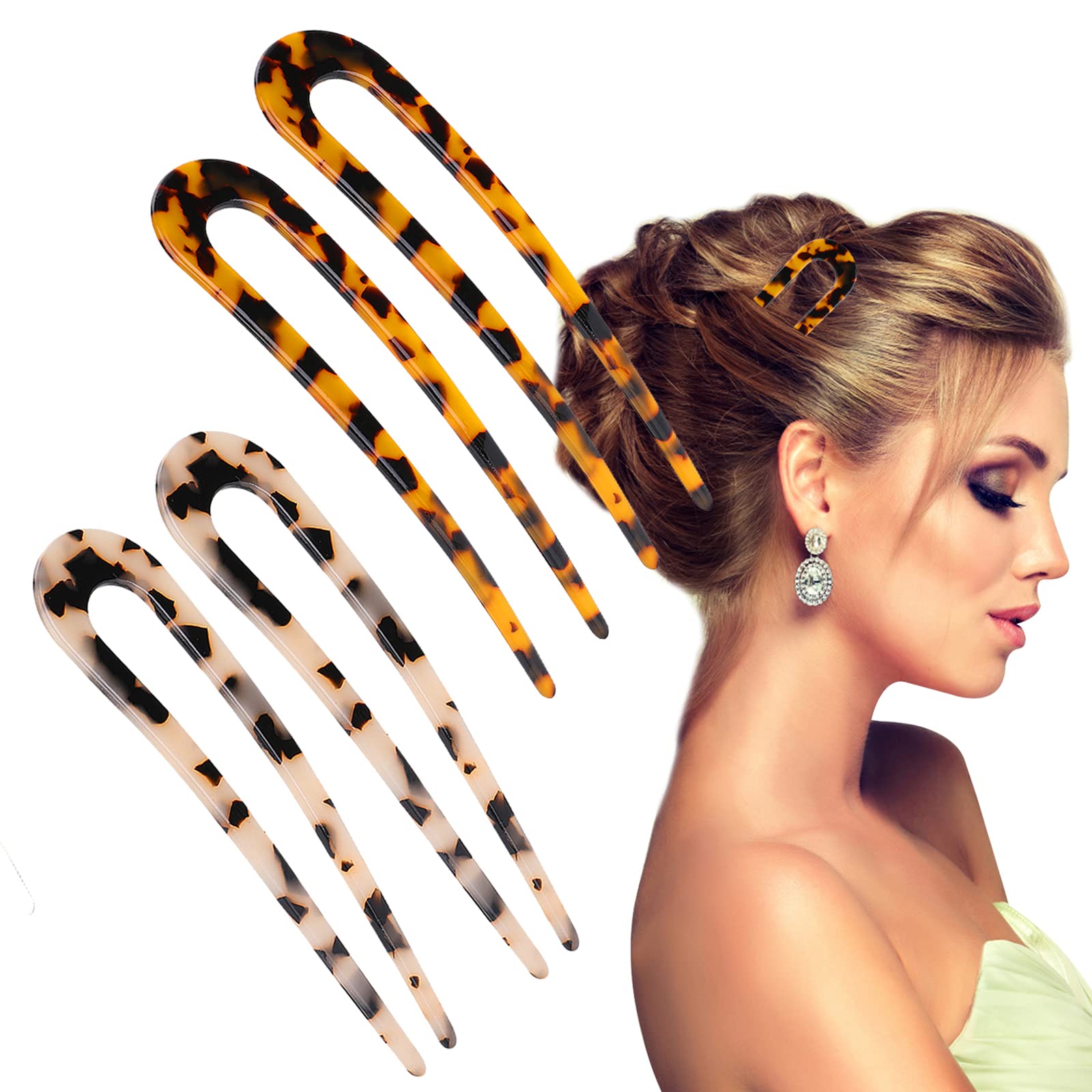 Features: simple style french style lazy style hairpin hairpin hair accessories hairpin hairpin hairpin curling tool suitable for ladies and girls, tortoiseshell hairpin Chinese ancient style, elegant and delicate hair curling tool. Category: hairpin Color: Tortoiseshell Material: tortoiseshell Set size: 15×10×0.5cm /5.91×3.94×0.19in Packing list: 4pcs × U-shaped hairpin?MULTI-PURPOSE?: This french bun hair clip can be used for parties, weddings, shopping, parties, everyday outfits, create a quick and easy hairstyle for women and girls, long and short hair, the U shape is simple and elegant, showing your uniqueness charm. ?SWEET AND THOUGHTFUL GIFT?: This U-shaped hairpin is suitable for most hairstyles, the style of the hairpin is simple and elegant, the color is classic, the french hairpin can be used as birthday, Valentine's Day, Christmas and other holiday gifts for your family, girlfriend and friends, tell them more stories about hairpins to express your emotions. ?WOMEN'S HAIRPIN MATERIAL?: French tortoiseshell hairpin is made of high-quality cellulose acetate, with a smooth surface polished, tortoiseshell pattern, the hairpin will not cause any damage to the hair, please feel free to use the hairpin, durable, not easy to break and deform, weight Lightweight and can be carried in a purse or makeup bag. ?WHAT YOU WILL GET?: You will receive four different styles of U-shaped hair clips, exquisite retro, simple and fashionable, each can create a different charm, everyday DIY style, french lazy low ponytail, french twist, classic low bun and other hairstyles, this metal hair clip can be paired with different outfits to make you a superstar in the crowd every day. ?THE STORY OF HAIRPIN?: In China, there are many records about the U-shaped hairpin. first, In ancient times, the original name was "Ji", which means that when a girl turned 15, people held a coming-of-age ceremony for her with a hairpin, which was a sign of her coming of age. Second, french hair clips is a token of marriage, and hairpin is also a gift from girls to boys. The token of love represents the symbol of love. hair clips keep pace with the times, more in line with people's aesthetics.