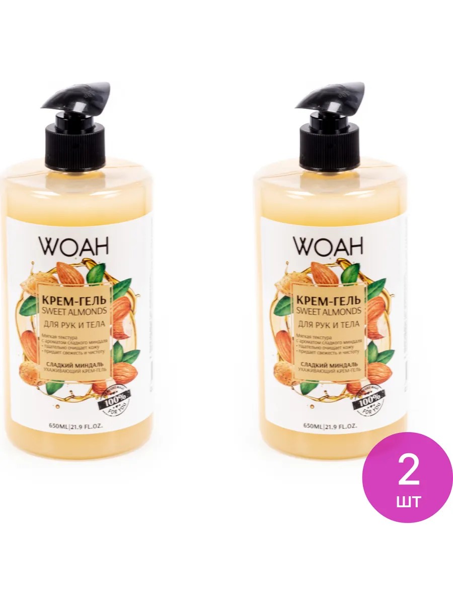 WOAHQB Крем-гель для рук и тела Сладкий миндаль 650мл, 2 шт