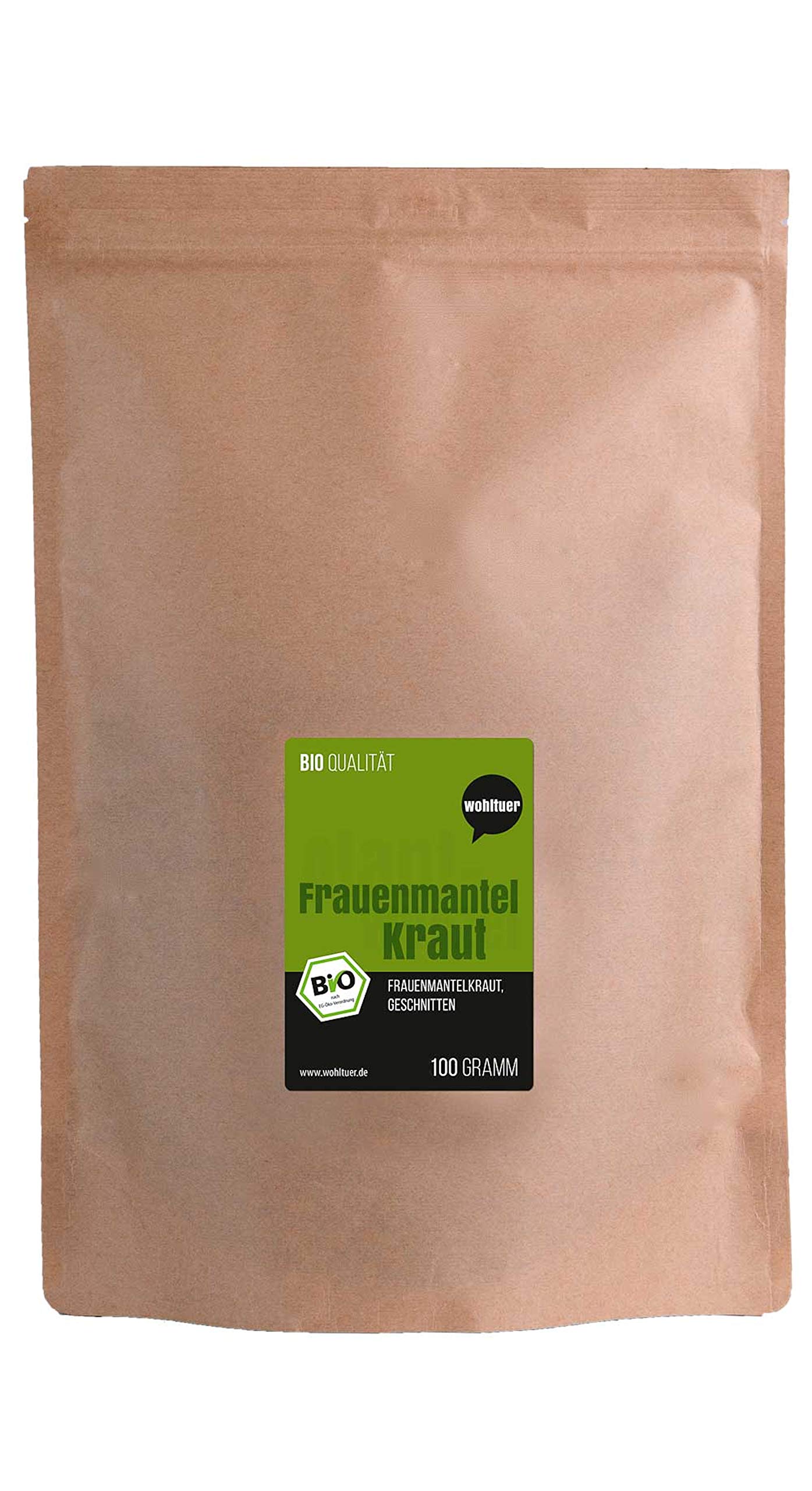 Usage note: Due to the potency of its ingredients, the use of medicinal herbs requires caution. We therefore recommend consulting your doctor, pharmacist, or naturopath. Organic quality from Austria in accordance with EU Eco-Regulation DE-ÖKO-006. German control bodies guarantee compliance with EU Eco-Regulation regarding cultivation, harvesting, and processing. Regular laboratory tests for residues are part of the quality assurance process. Particularly gentle harvesting and drying: The gentle finishing process ensures a natural product that is especially rich in active substances. Use: Tea, tinctures, and infusions are traditionally made from dried herbs. To prepare a women's mantle tea, pour 2 teaspoons with 200 ml of boiling water and let it steep, covered, for 10 minutes. The best of natural medicine: Women's mantle contains up to 8 tannins and 2 flavonoids. Tannins have a muscle-toning effect. As a home remedy, the women's coat is used for menstrual pain.