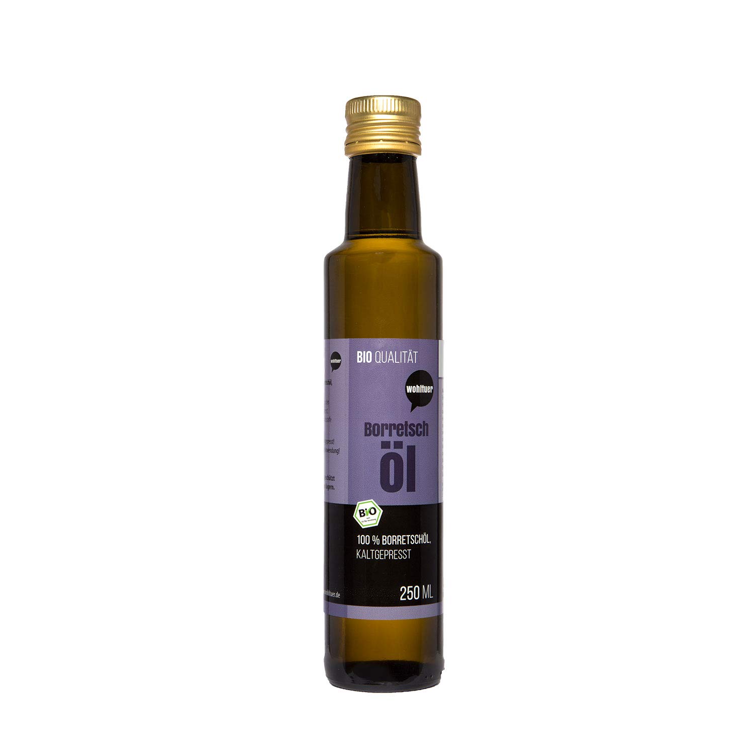 Wohltuer Lot de 2 flacons d'huile de bourache bio 250 ml – pressée et 100 pure – Naturel pur (500 ml au total)