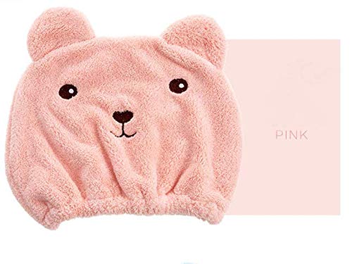 WOIWO Super Soft Microfiber Bath Towel Hat Hair Quick Drying Towel Hat Cute Cartoon Pattern Ultra Absorbent Dry Hair Hat -Pink