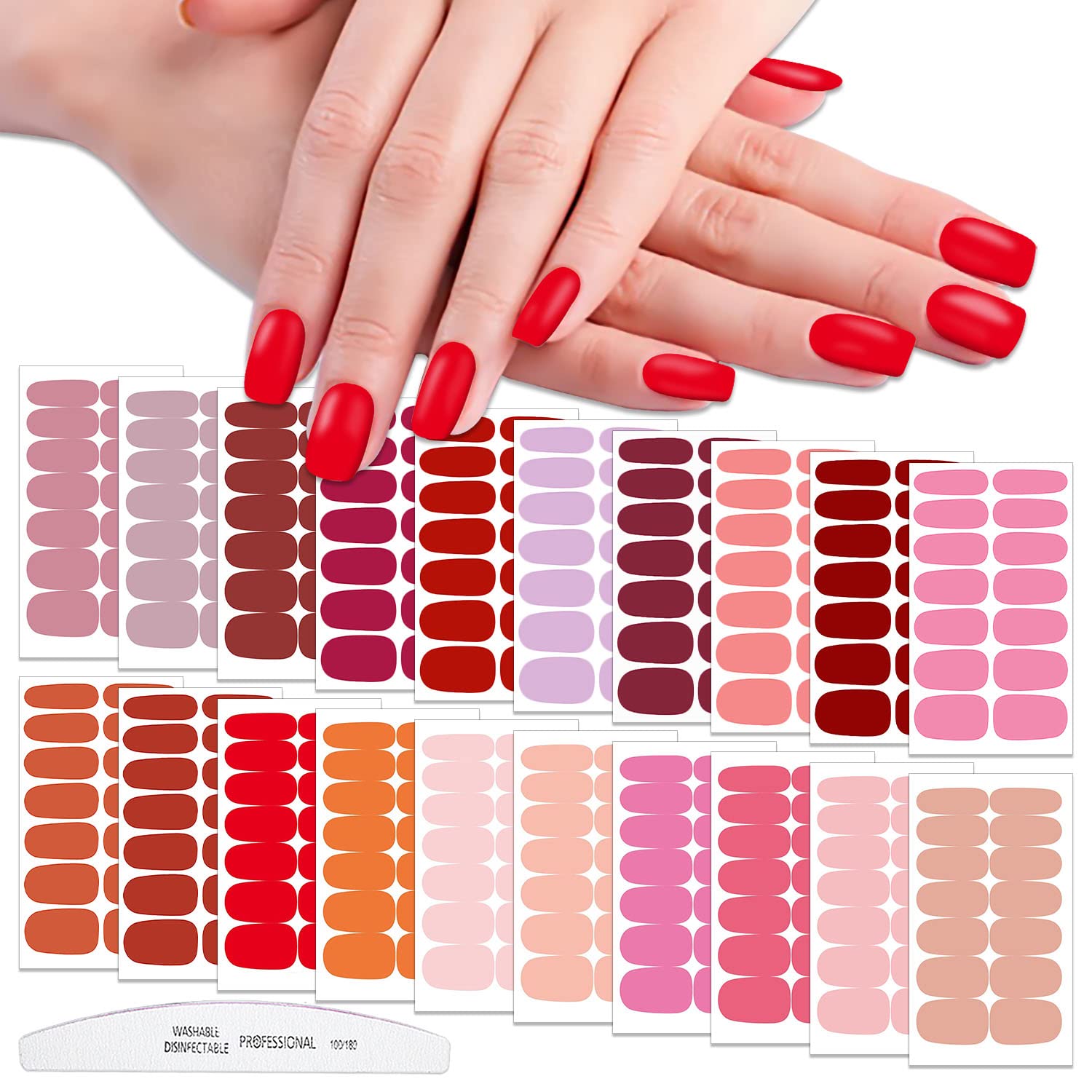 WOKOTO 20 Sheets Red Pink Nail Polish Strips Full Nail Wraps Solid Nail Stickers for Women Nail Art Polish Stickers Gel Nail Strips for Women Girls Nails Stick On Nails for Women Nail Polish Wraps KIT3 Solid 3