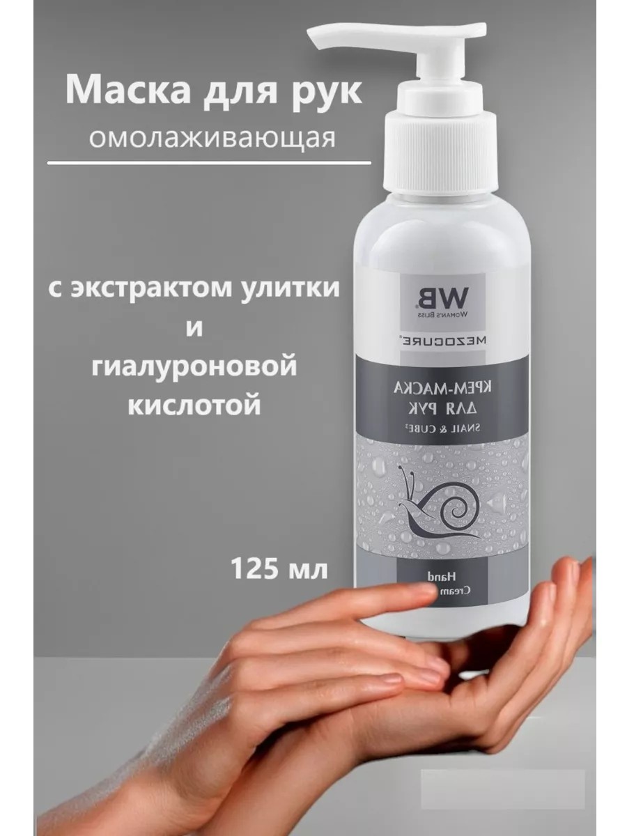 Профессиональная КРЕМ МАСКА для рук омолаживающая с экстрактом муцином улитки и гиалуроновой кислотой Woman‘s Bliss. Из линейки профессиональной косметики для ухода за лицом и телом, в которой концентрация активных компонентов выше чем у косметики для широкого потребления.