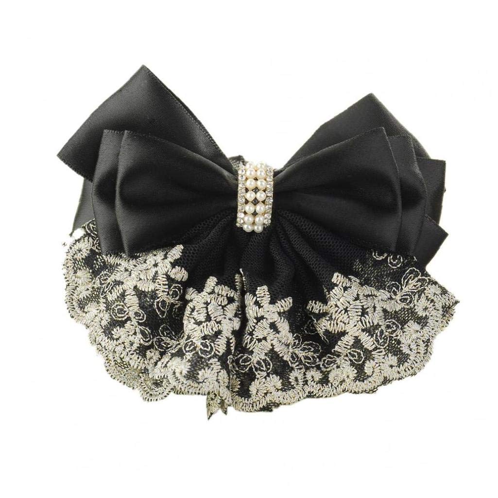 Women Hair Bun Cover Net Snood Hairnet Bowknot Barrette Hair Clip Bow Lace Flower Hair Accessories(Black)