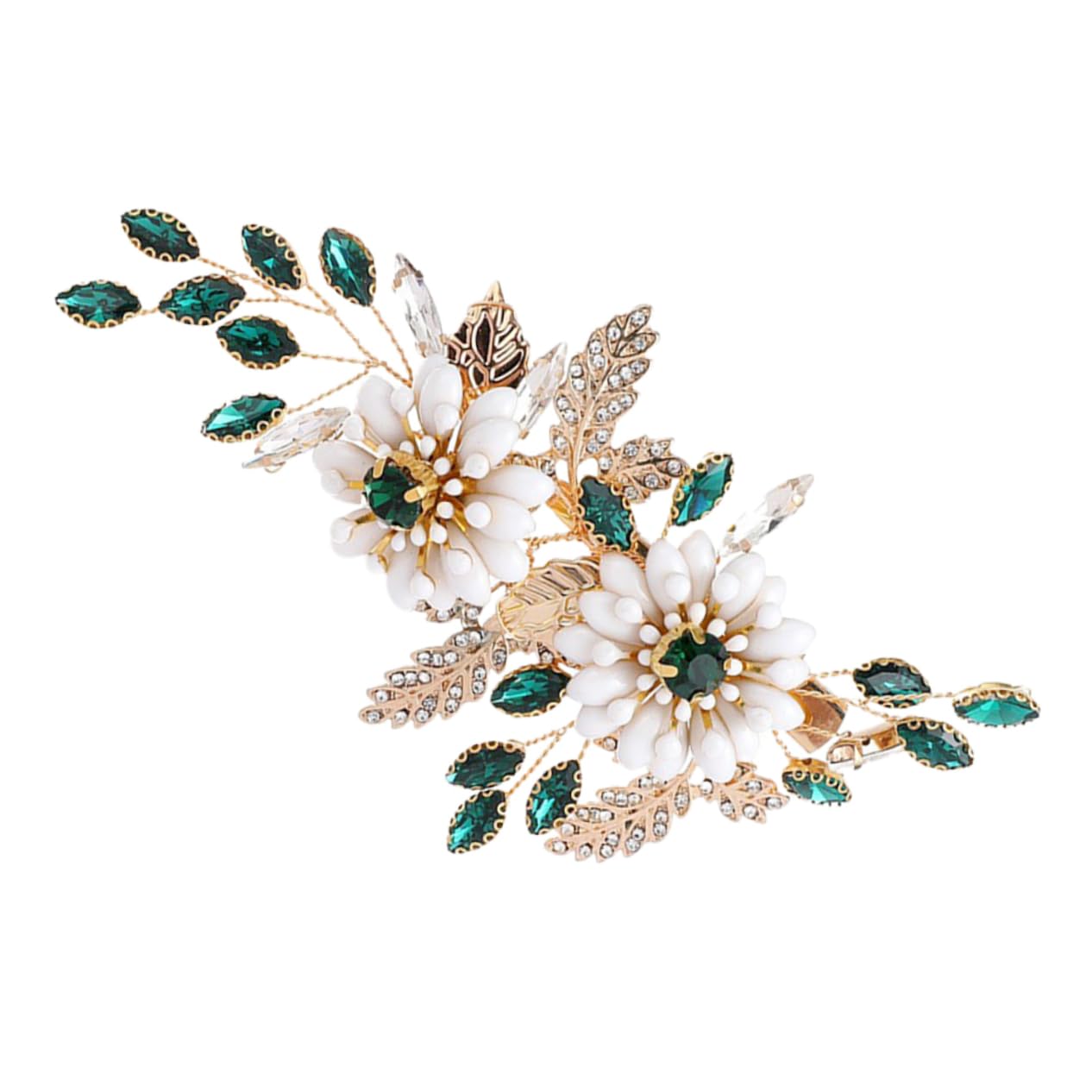 Girl hair clips: flower hair clips elegant and stylish design of the hair clip for women that adds charm to any outfit styles. Flower hairpin: made from sturdy materials that are long-lasting, these hair clips are not easy to deform or break. Green crystal barrette: unique flower design of this hair clip can make you stand out from the crowd, become very impressive. Flower hair accessories: flower hair clips easy to use and stays securely in place, with high hardness, not easy to deform or break, the hair clip can be used rest assured. Rhinestone bridal comb barrette: featuring flower decoration, the hair clip for girls add luxury and elegance to any hairstyle.