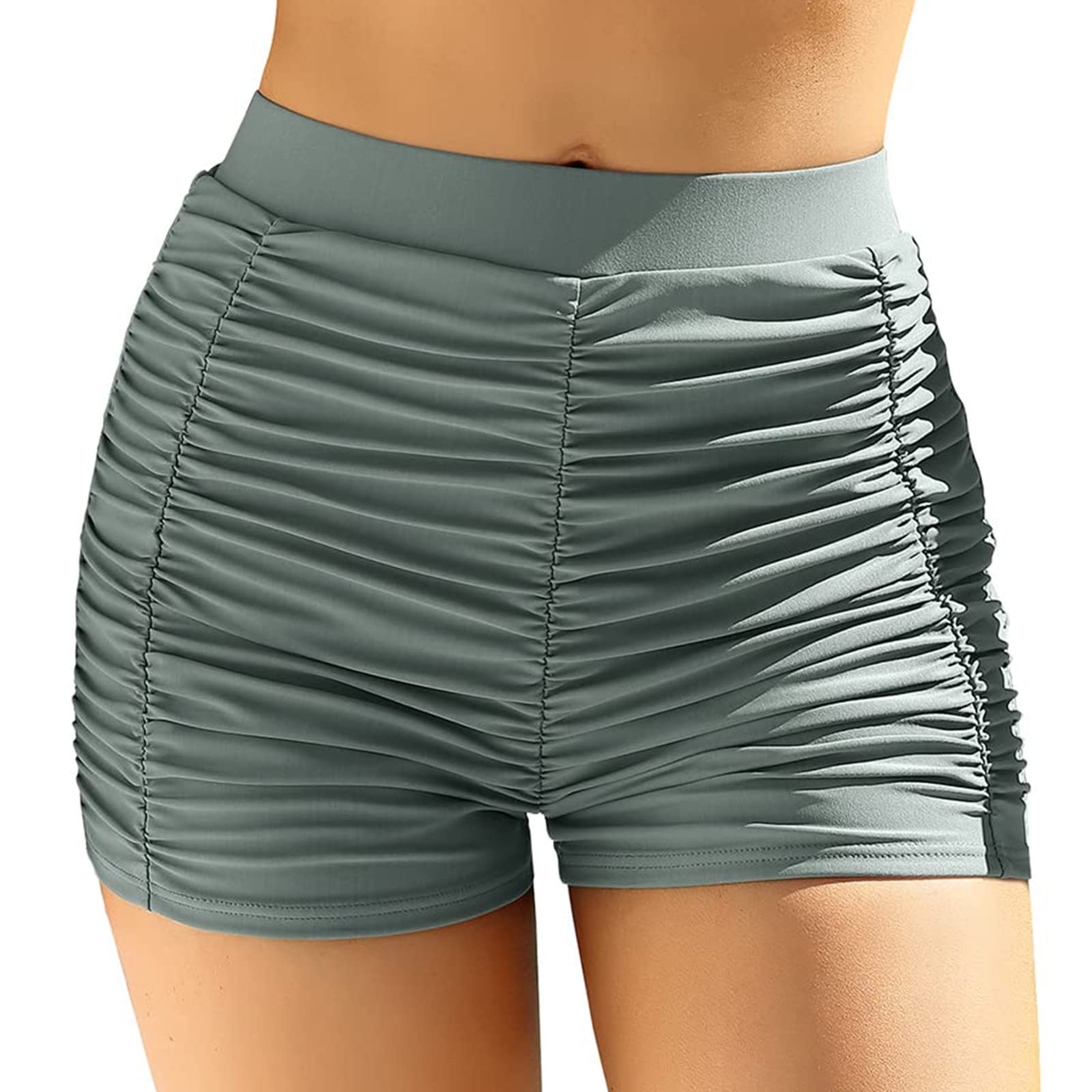 Damen Badeshorts Kurze Schwimmshorts High Waist Slip Klassische Bikini Elegantes Strandshorts Beachwear Bademode Shorts V-Slit Beachwear Bademode mit Badeshorts XXL 2-grey