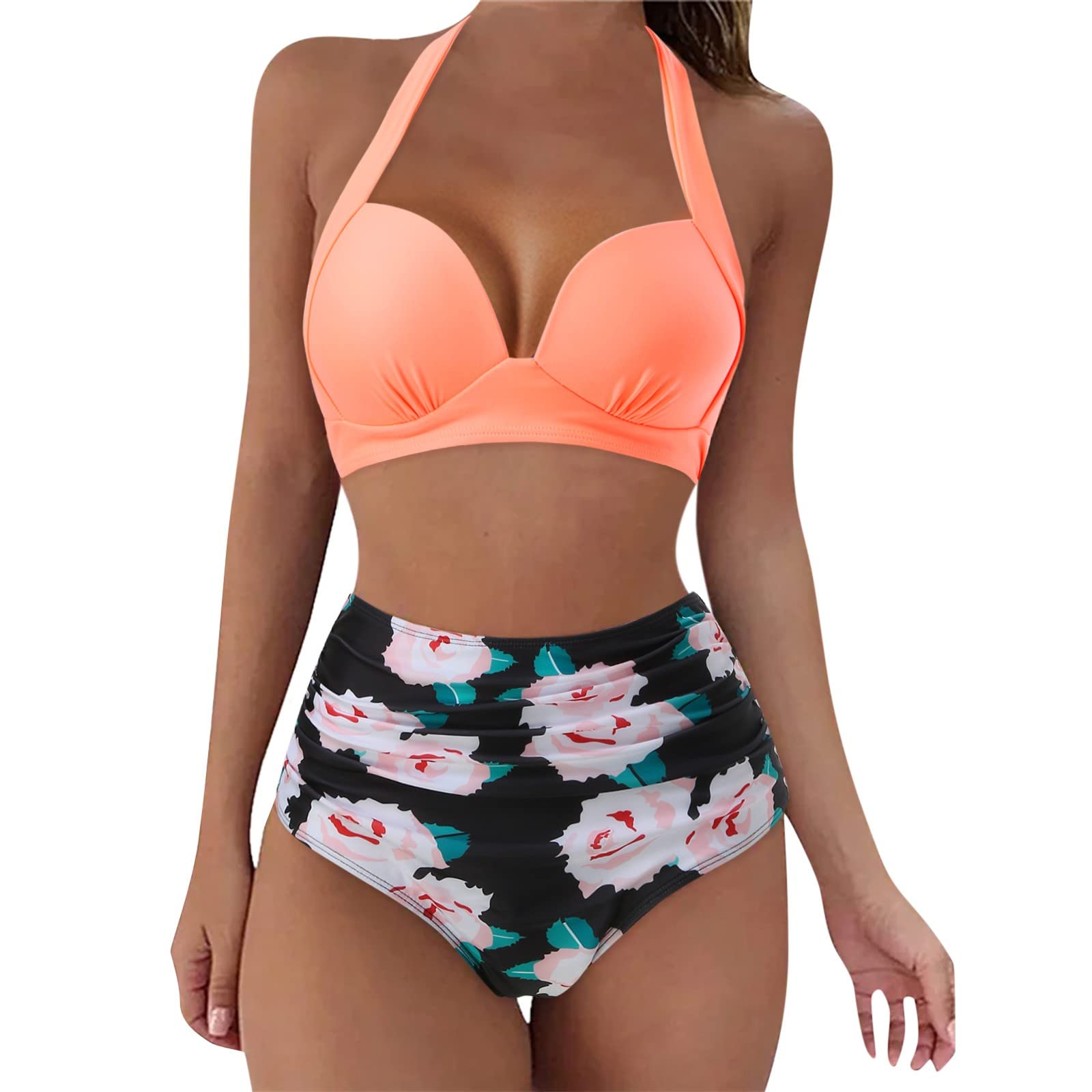 Women's Bikini Sets Pleated Bikini Swimsuits 2 Piece Swimwear Vintage 50s Brazilian Cheeky Swimming Bottom Bathing Suit Swimming Costume 3620-sgnbd-5-ag L