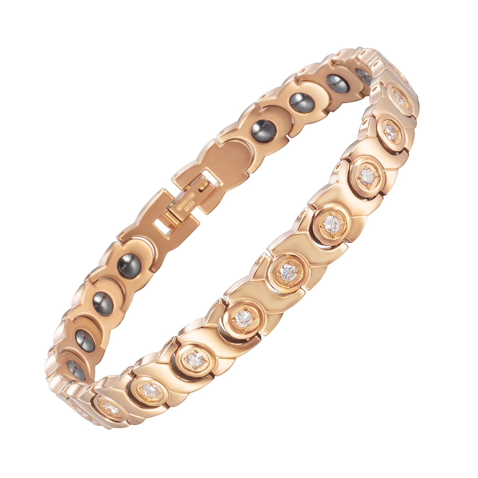 Women's bracelet, with red, white and blue diamonds, magnetic, black women's magnet hardship, 18 carat rose gold, titanium steel bracelet White