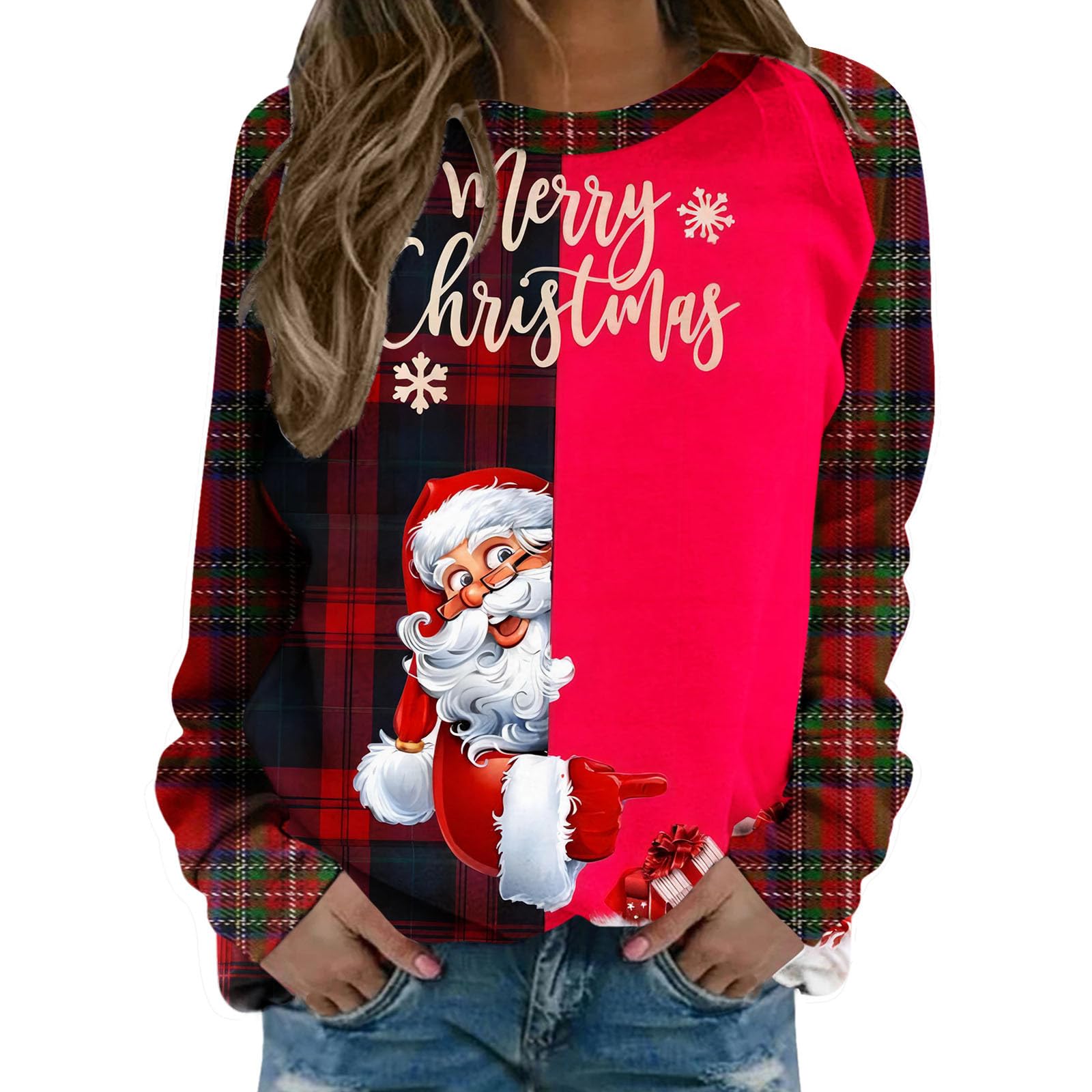 Women's Christmas Sweatshirts Cute Snowman Penguin Print O-Neck Raglan Top Shirt Pullover Comfy Warm Xmas Jumper Winter Long Sleeve Tops Loose Tunic Top Sweaters Z11-red M