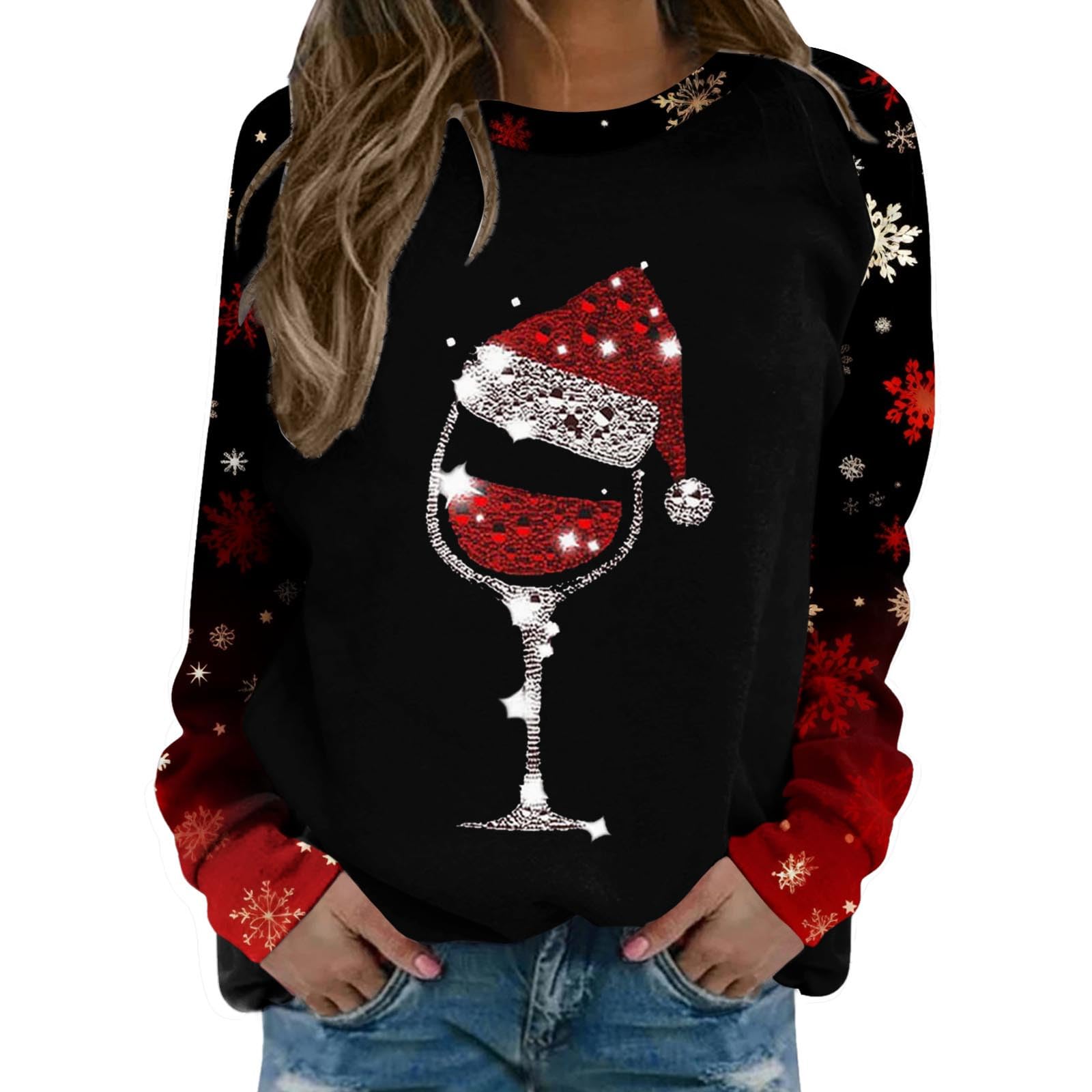 Women's Christmas Sweatshirts Cute Snowman Penguin Print O-Neck Raglan Top Shirt Pullover Comfy Warm Xmas Jumper Winter Long Sleeve Tops Loose Tunic Top Sweaters Z12-black XL
