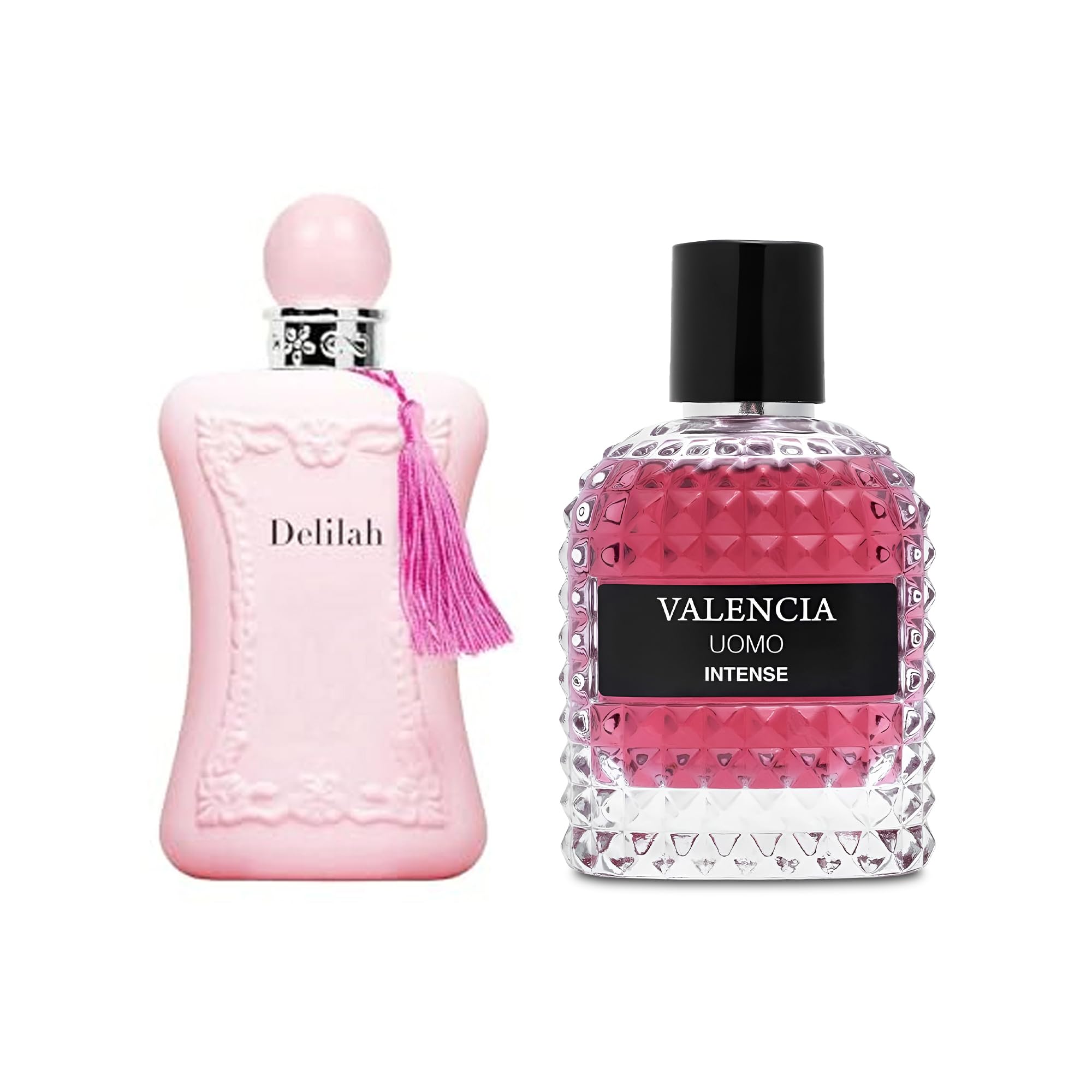 Women's Delilah&Valencia Uomo Intense Perfume Set Romantic Floral Scent Eau De Parfum Spray for Women 3.4 Fl Oz Each Bottle Daily Used Fragrance