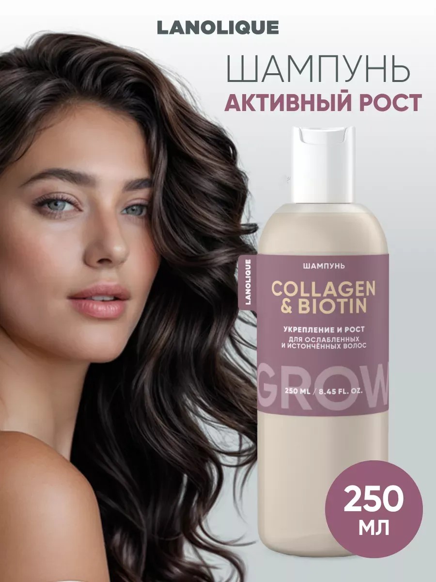Шампунь для волос с коллагеном и биотином — активатор роста для ослабленных, истонченных волос. Шампунь для роста волос укрепляет корни волос и их структуру по длине. Шампунь от выпадения волос значительно сокращает ломкость волос, делает их прочными и здоровыми. Это идеальный шампунь женский для роста, густоты и длины! Шампунь против выпадения волос с маслом черного тмина пробуждает спящие волосяные фолликулы, стимулируя активный рост волос. Коллаген заполняет пустоты в поврежденном стержне волоса, восстанавливая его целостность, и разглаживает чешуйки кутикулы волоса. Биотин укрепляет и увлажняет от корней до кончиков. Шампунь восстанавливает и поддерживает здоровый водно-жировой баланс кожи головы, что также способствует росту сильных, блестящих и шелковистых волос. За счет уплотнения каждого волоска работает как шампунь для объема. Шампунь для роста волос женский также эффективен и для мужчин. Шампуни и кондиционеры Ланолик — доступный современный уход за волосами. Для наилучшего результата рекомендуем использовать шампунь и бальзам для волос Ланолик Укрепление и Рост в комплексе. Способ применения: Нанесите шампунь для волос на влажную кожу головы и волосы массирующими движениями, вспеньте, затем тщательно смойте теплой водой. При необходимости повторите процедуру.