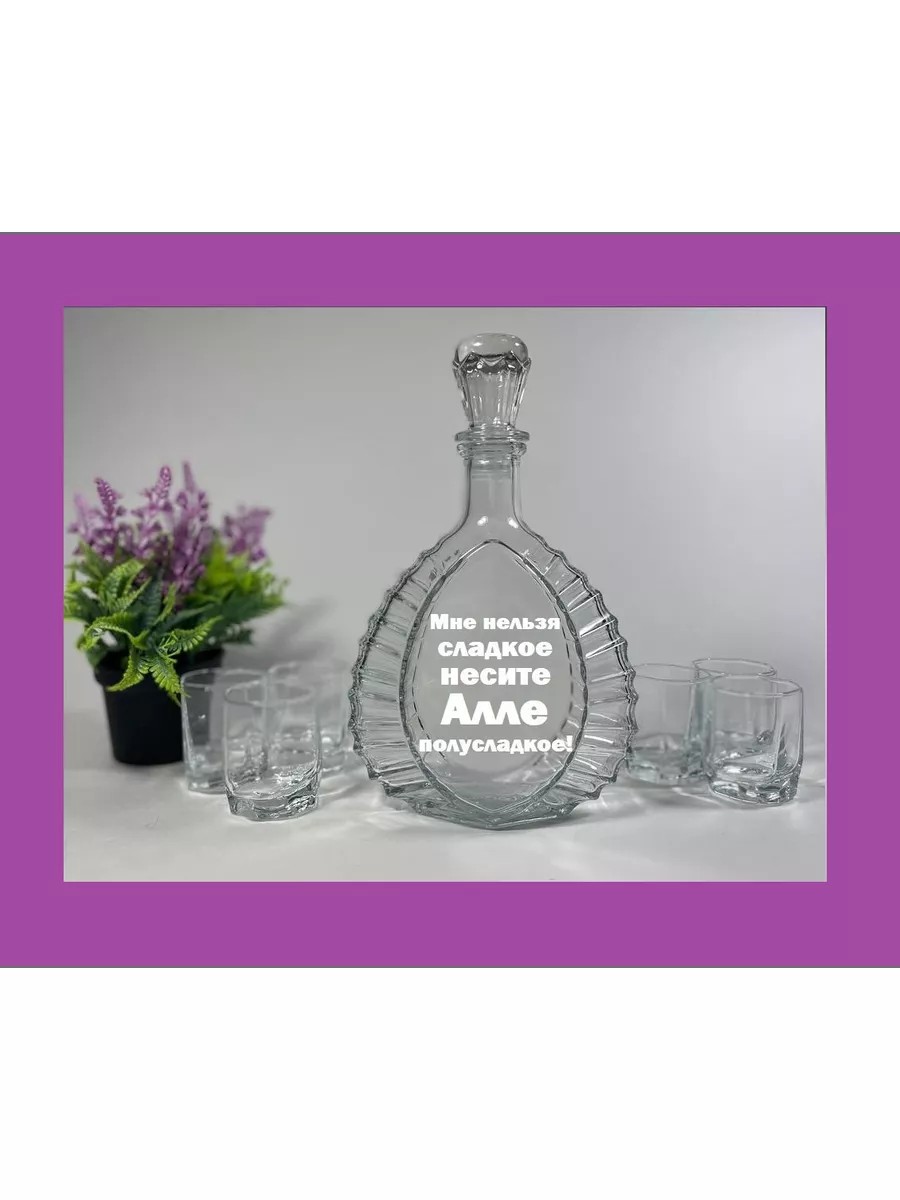 Женская именная бутылка, графин с гравировкой и рюмками