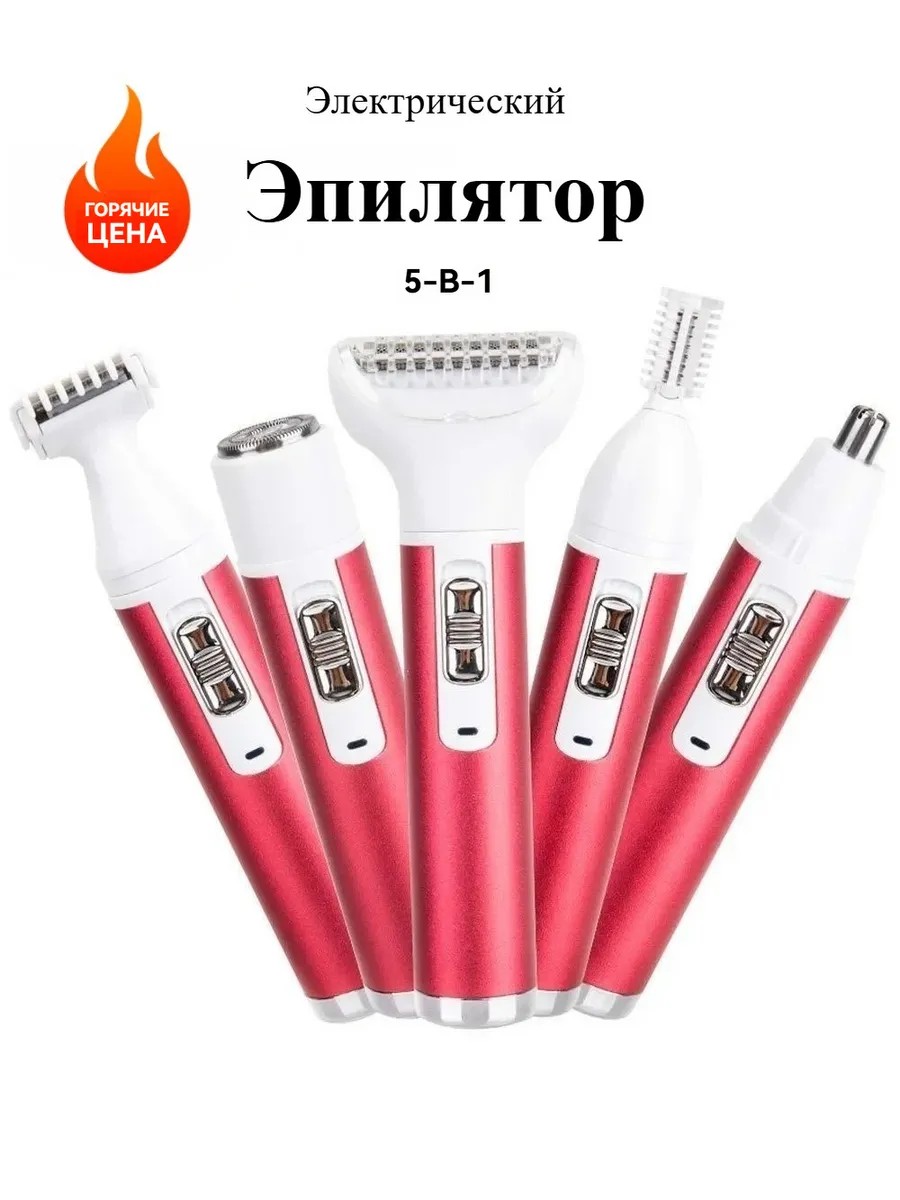 Женская электробритва 5-в-1: Эта электробритва оснащена 5 сменными головками. 1 бритва 3-в-1 для бритья большой зоны, 1 триммер для носа, 1 бритва для бритья маленькой зоны, бритва для бровей и бритва для лица – эта бритва поможет вам настроить эффект бритья лица, рук, ног, подмышек, ноздрей и зоны бикини за считанные минуты, не оставляя следов.