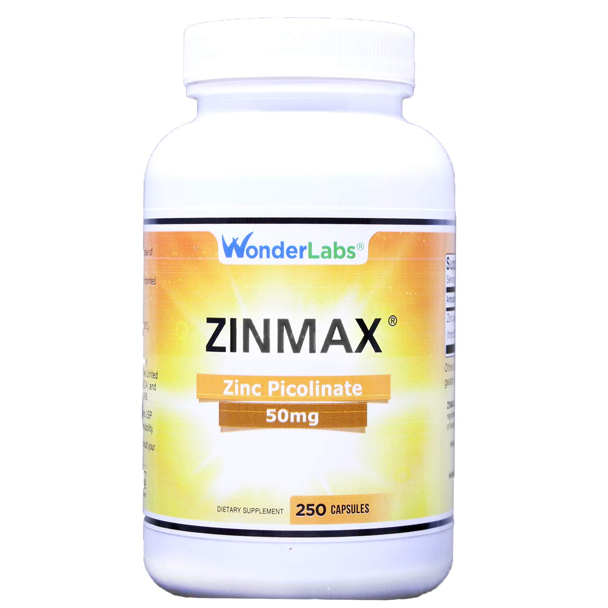 Wonder Laboratories Zinc Picolinate 50 mg | Zinmax Top Form of Zinc in Terms of Absorption for Immune Support 250 Capsules